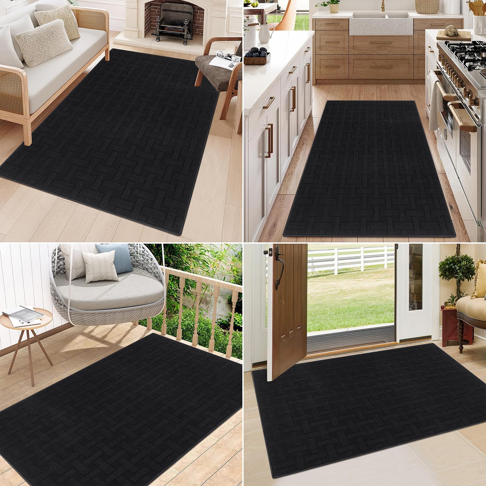 Low-Profile Welcome Mat: The absorbent runner rug measures 0.24 inches in thickness (6mm). The low design prevents the doors or feet from getting stuck, the door will go over this rug easily, convenient for you to open or close the door. The stitching of the edges is double-layered technology, which is sturdy and practical, very durable and not easy to crack. Perfect for both indoor and outdoor use.
