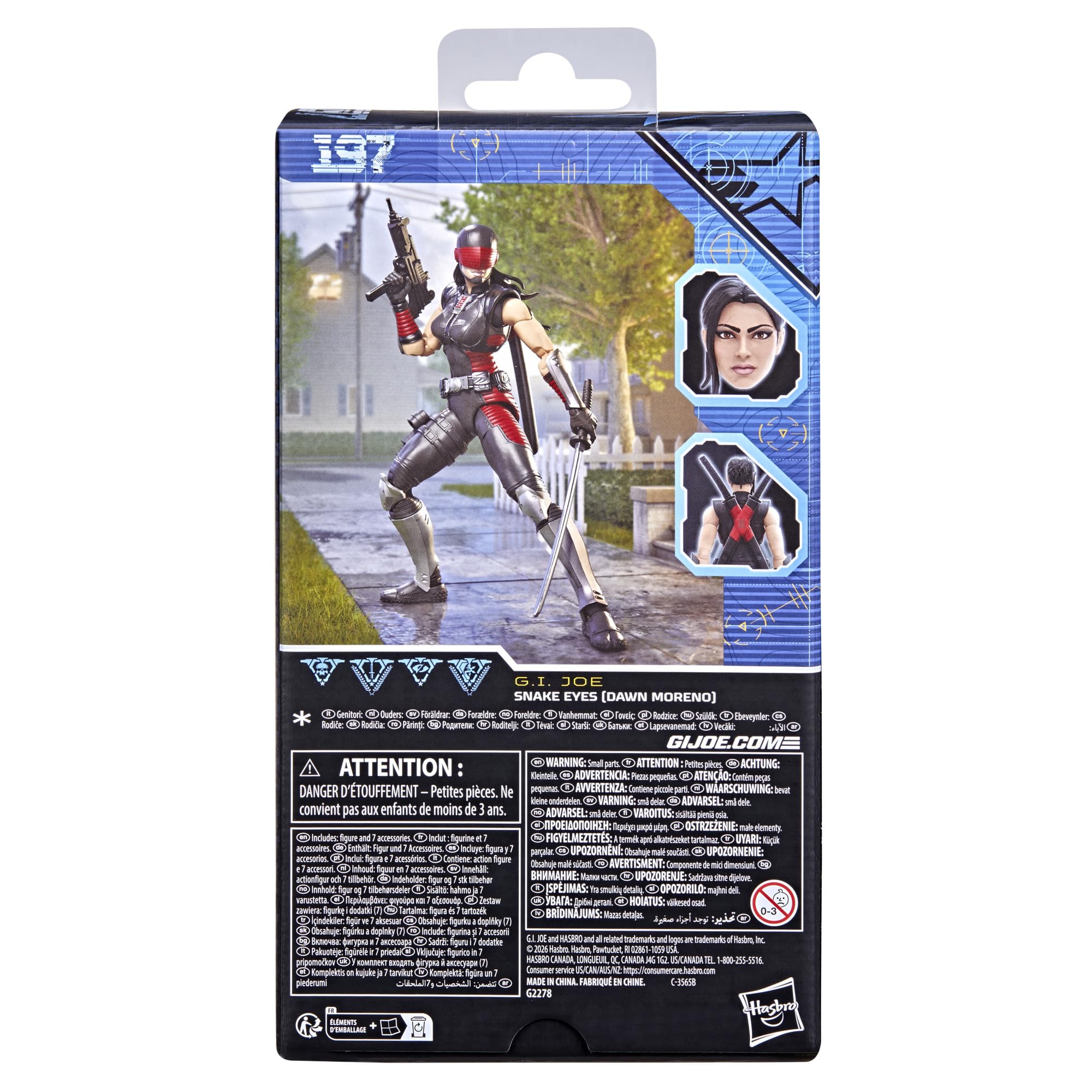 NEVER-BEFORE-RELEASED FIGURE: Introducing fan-favorite character Snake Eyes (Dawn Moreno) to the G.I. Joe Classified Series line adding the G.I. Joe Ninja to the ranks of G.I. Joe with 7 accessory pieces inspired by the character's rich history