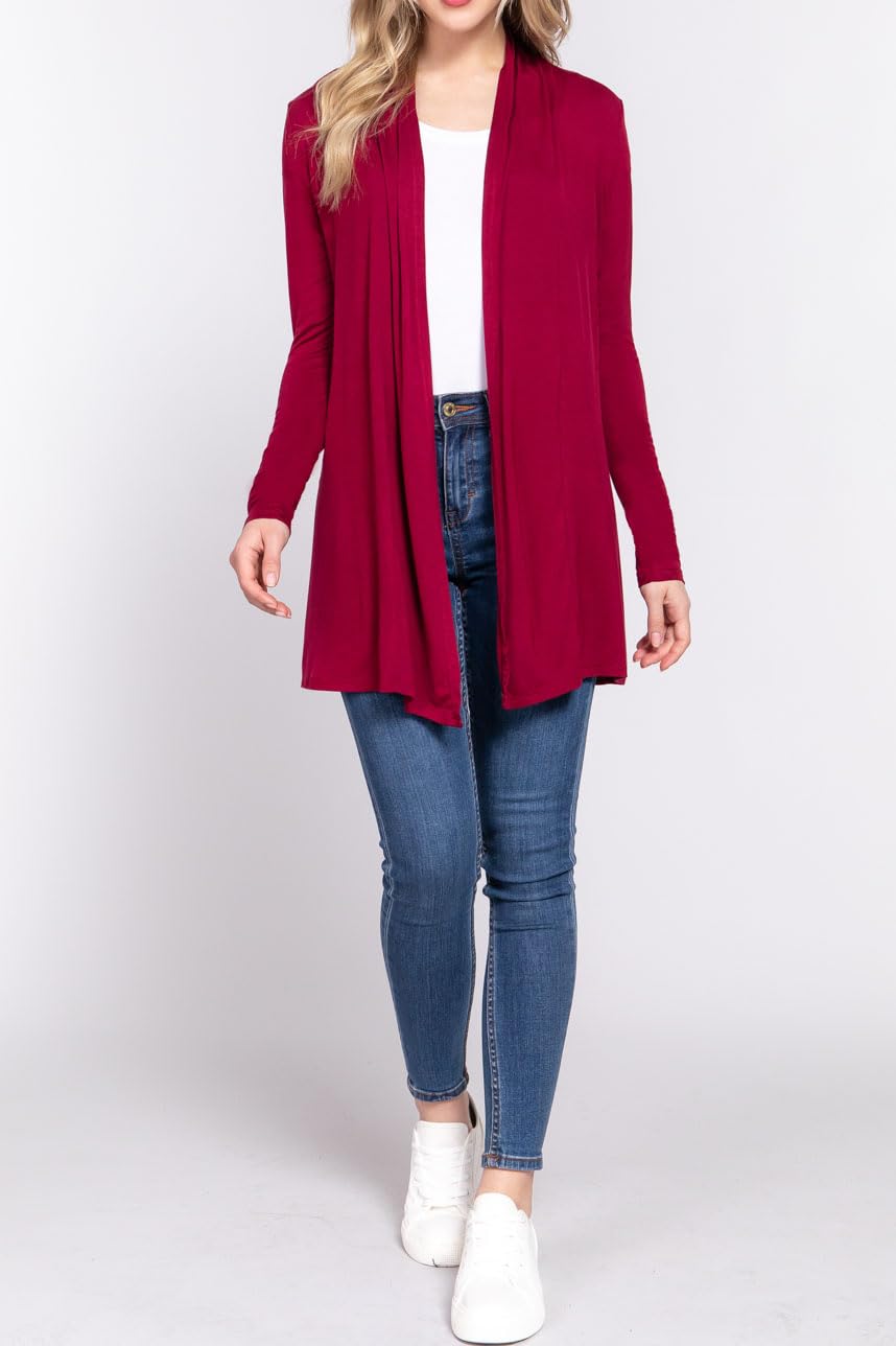 Feature : Long Sleeve and Sleeveless 2 types |Open front |Solid color|Asymmetrical hem|Double stitching on bottom hem and armhole|Shawl collar|Soft and skin friendly fabric