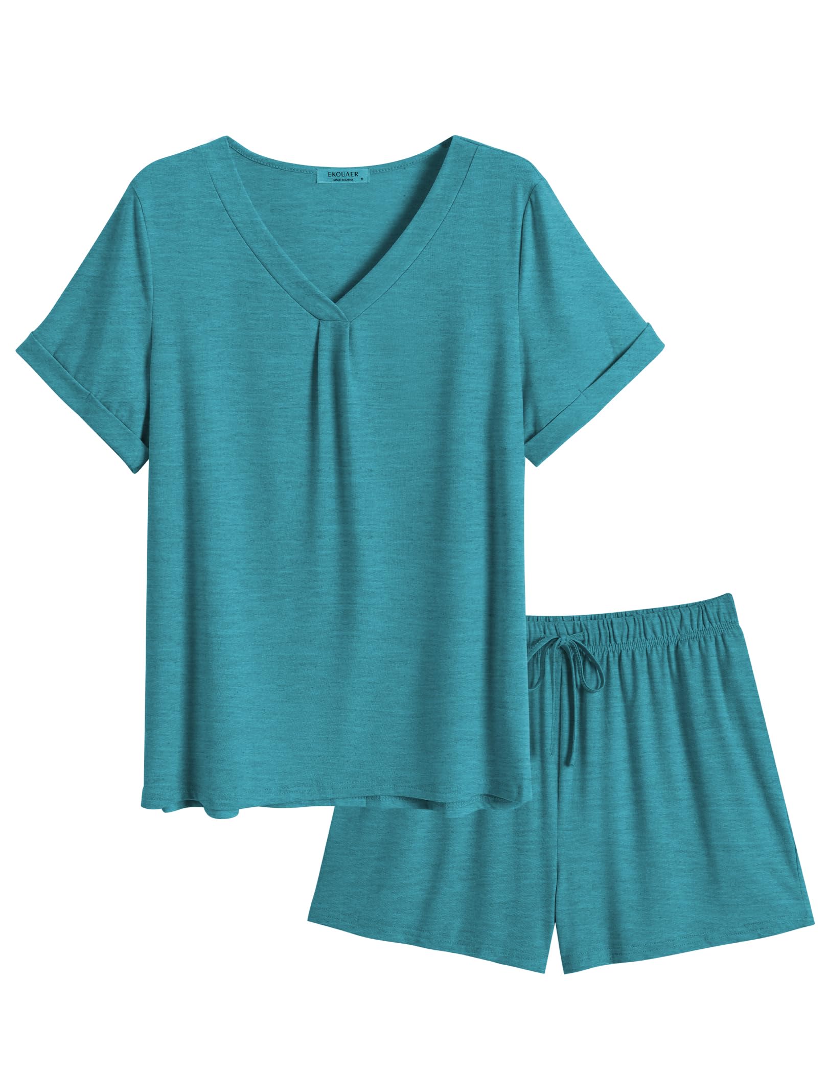 【Material】The fabric of this pajamas set for Women is 76% Polyester + 19% Viscose + 5% Spandex, which is super soft, lightweight, skin-friendly, stretchy, breathable and moisture wicking.