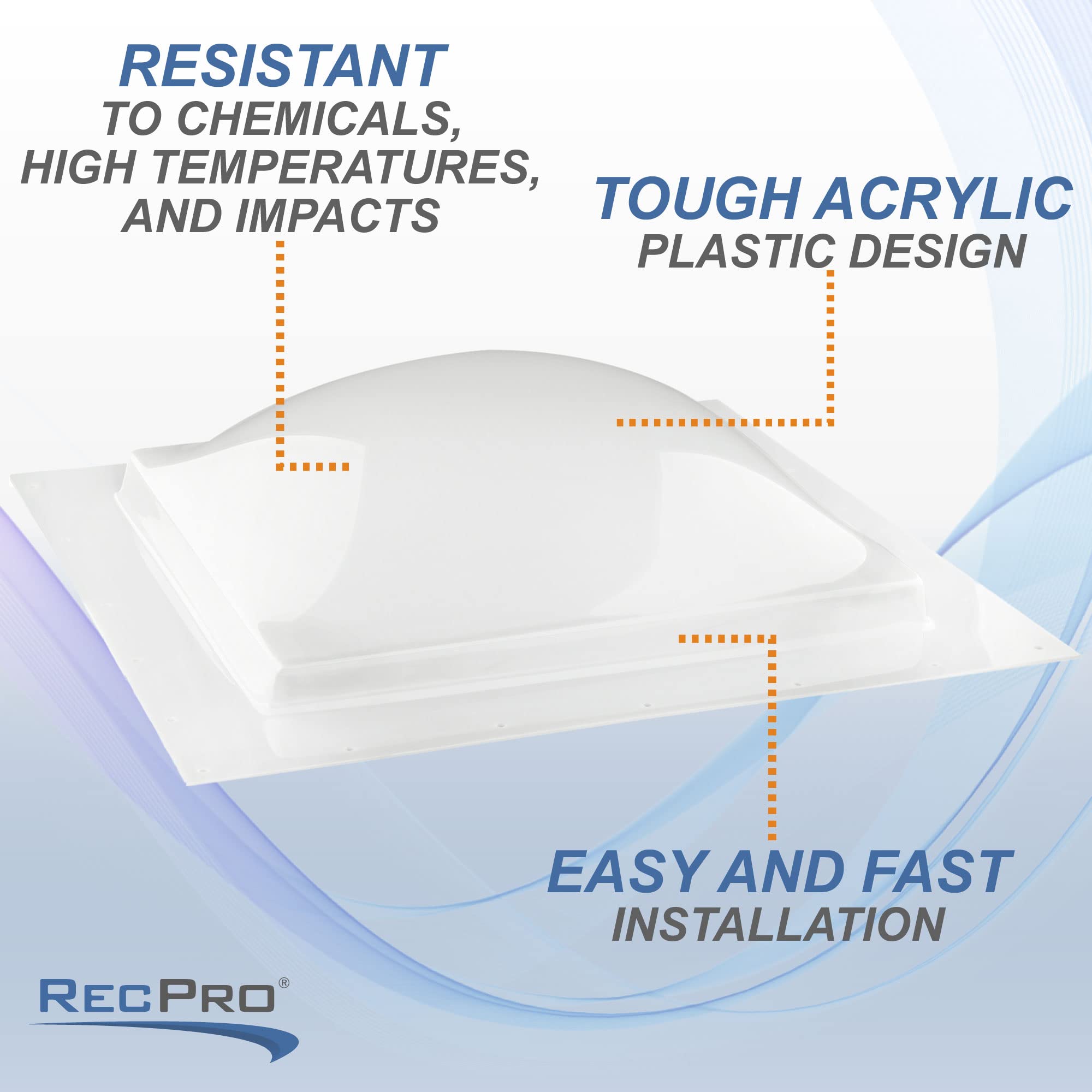 The outer dome skylight is created using acrylic plastic. This plastic material is very tough, offering resistance to impact, chemicals, and temperature.
