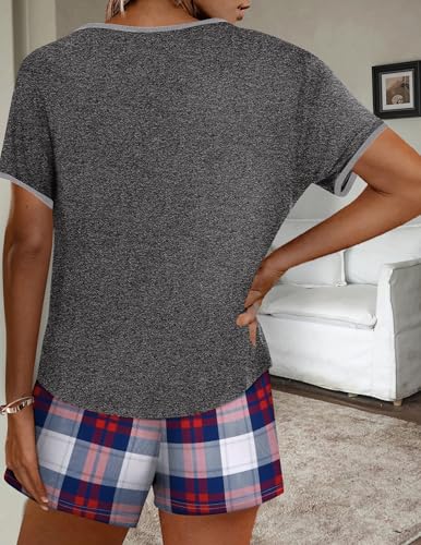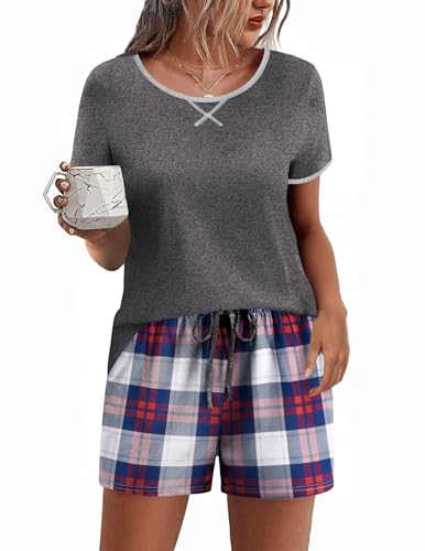 Two Piece Pajama Set: Top- with Round-neck,short sleeve,stylish color block, Pj Short- with Elastic waist,classic plaid & printοΌwhich suitable for every age group. Nice design Short Pajama Set for a relaxing day and night