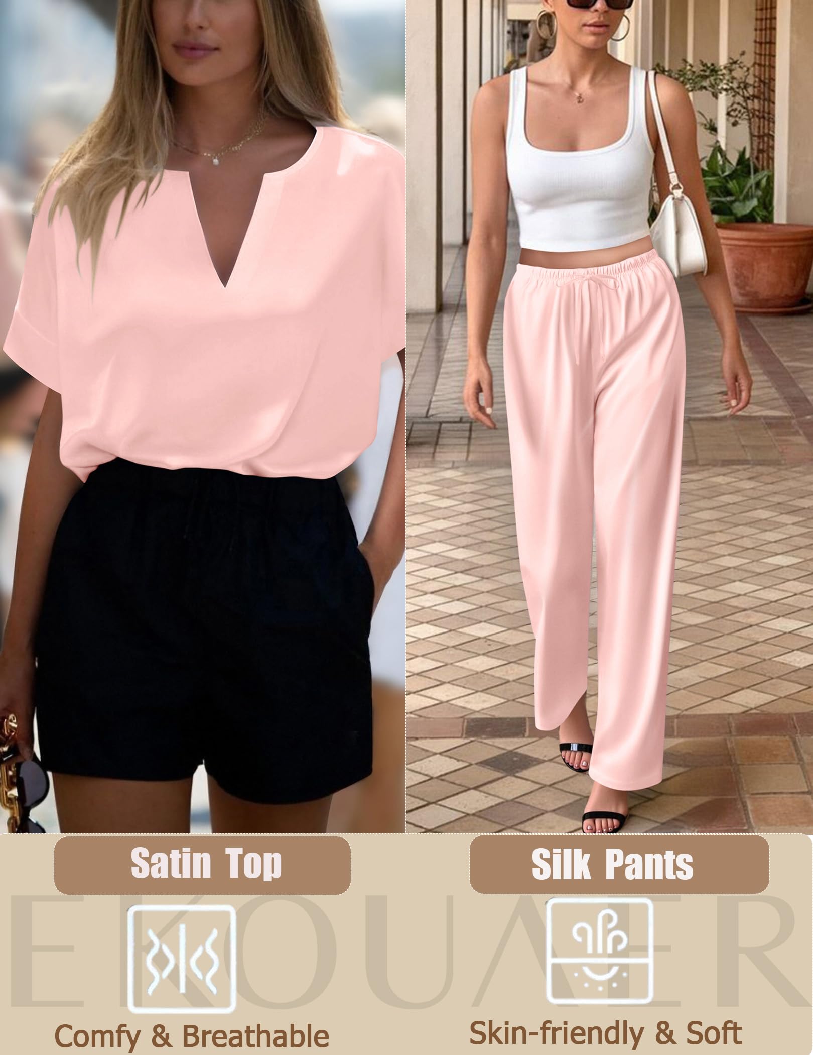 SILK PAJAMAS: Ekouaer women's satin pajama sets are everyday wardrobe essentials. The unique design makes this silk short sleeve pajama set very popular with Influencers
