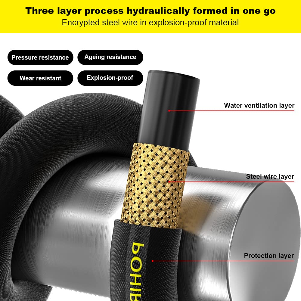 【Kink Resistant Pressure Washer Hose】The combination of high-quality materials and high-tech craftsmanship brings excellent kink resistance. It's easy to carry, drag and roll up. Warm Tips: For ease of movement and storage, please lay the hose flat to its full length before first use.