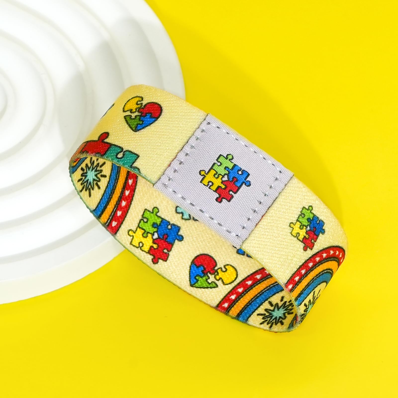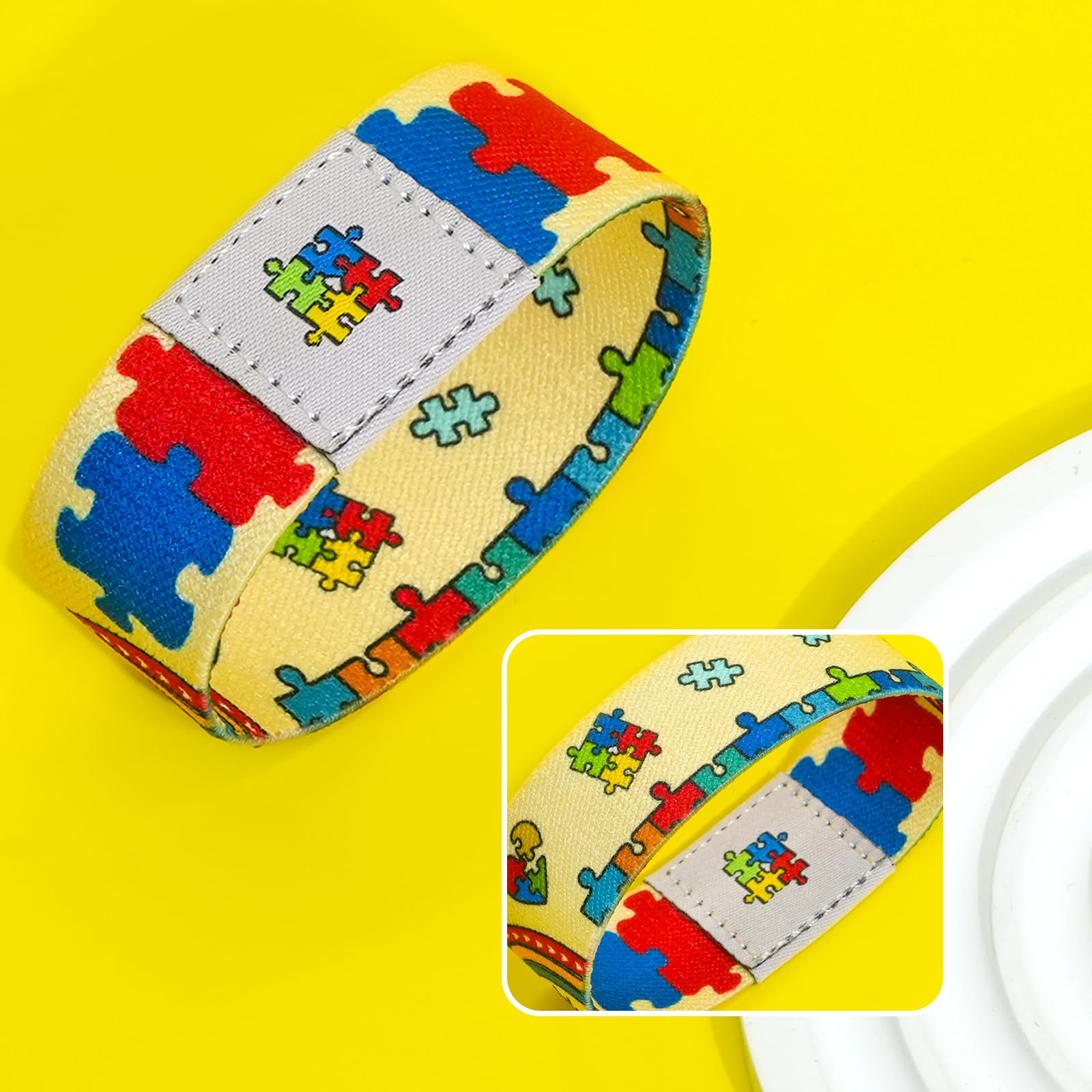 Comfortable Elasticity: Crafted from premium polyester, this autism wristband offers a soft touch and flexible fit, comfortably adjusting to most wrist sizes without compromising on durability. Designed to suit both men and women, this stylish bracelet easily slips on and off, making it a versatile choice for everyday wear or special events promoting autism awareness.