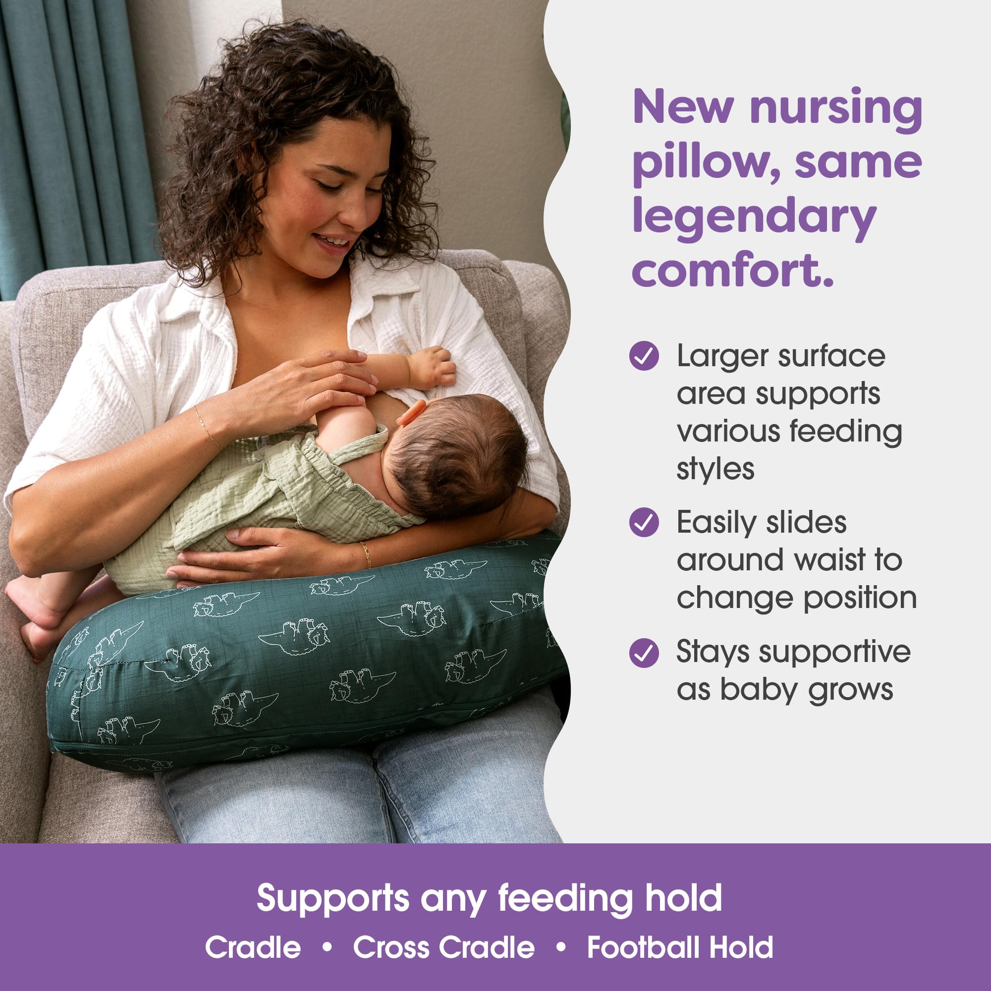 Lift, Loft, Love: Our mom-created and tested, baby approved and universally adored breastfeeding pillow, now with extra firmness that meets updated regulatory standards and crafted to stay supportive and secure throughout babyhood (and then some); higher cushion brings baby closer for a better latch and more cuddle time