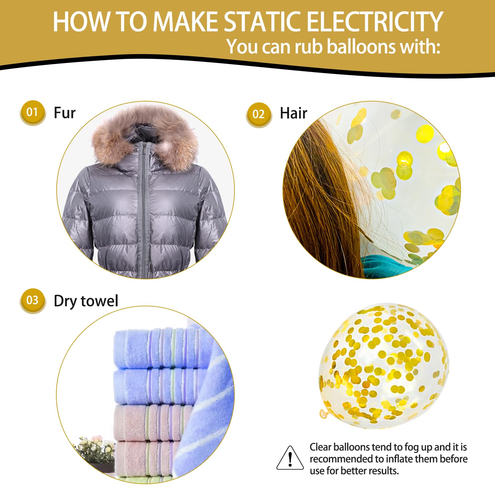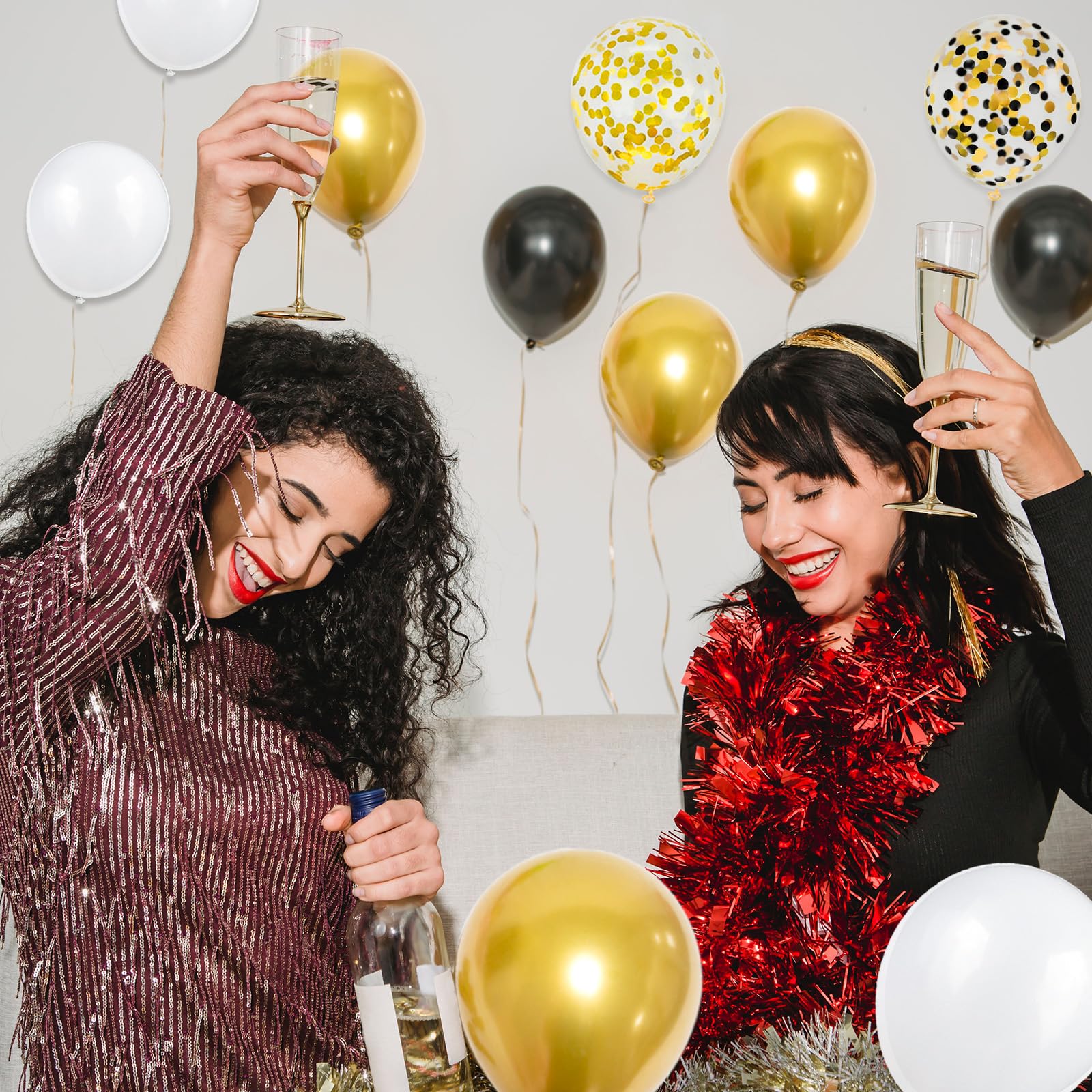 【Multipurpose】You can these balloons make black white gold balloon garland kit, After blowing up the confetti balloons, rubbing the balloon on the hair or fabric and shaking it will help the confetti stick to the side, which can make the balloon look more beautiful. When the party is over, you can pop the balloons to let the confetti fall, adding fun to the party.