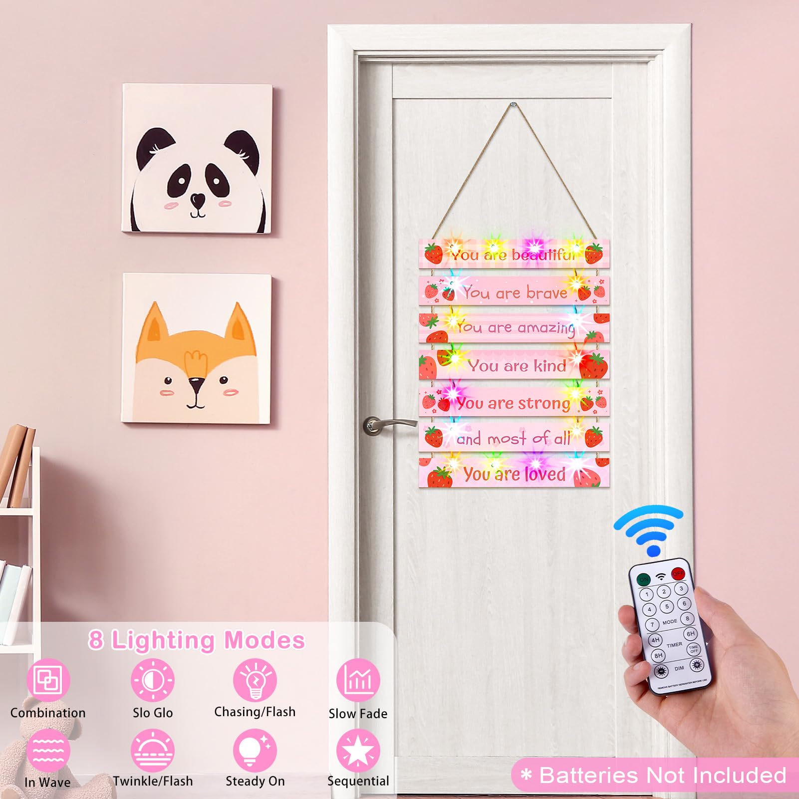 Package: The play room decor for kids package includeds 1 pcs girls room decor board, 1 pcs LED light with empty battery box (not including batteries), 1 pcs remote control (not including batteries), both do not including batteries, need to be purchased by customers themselves