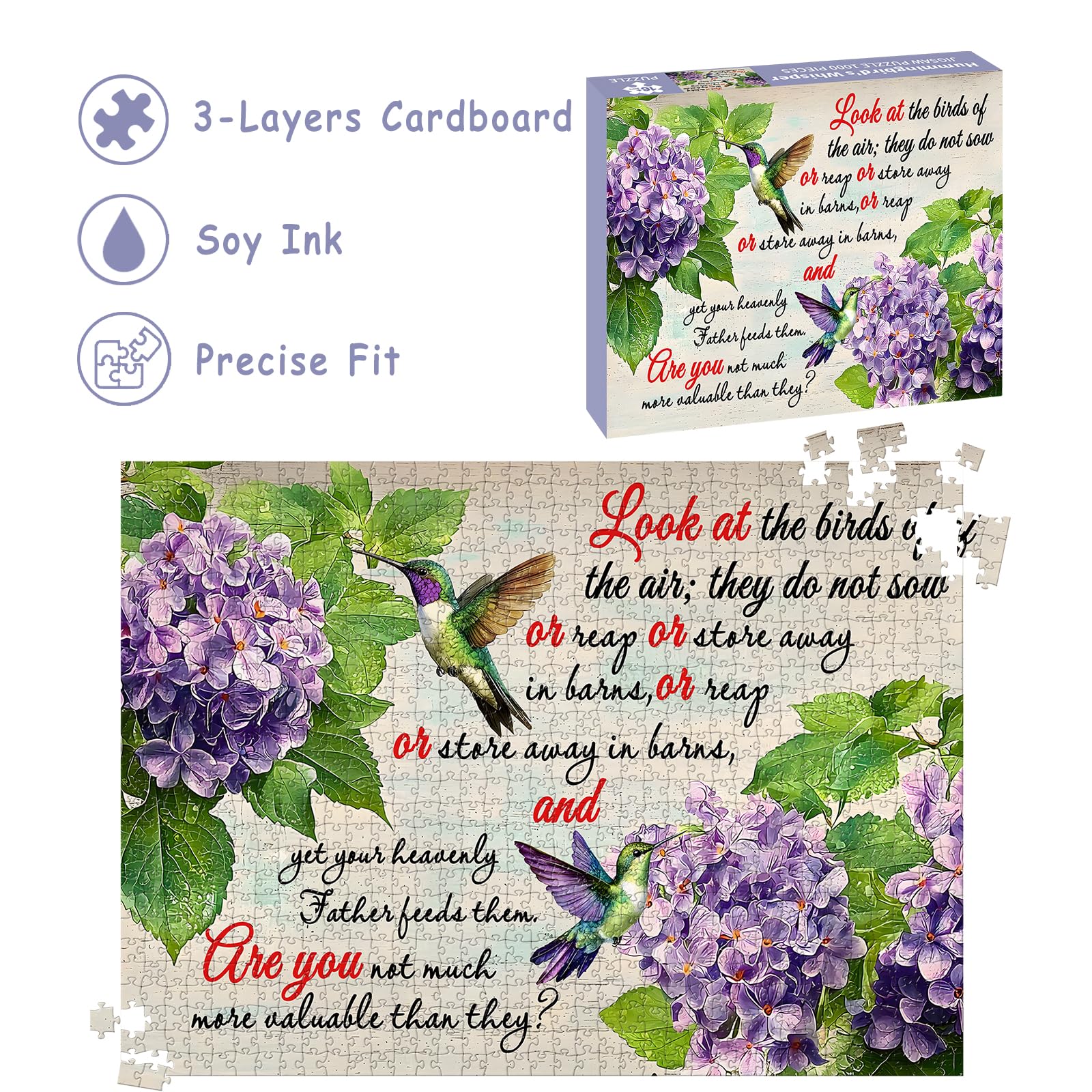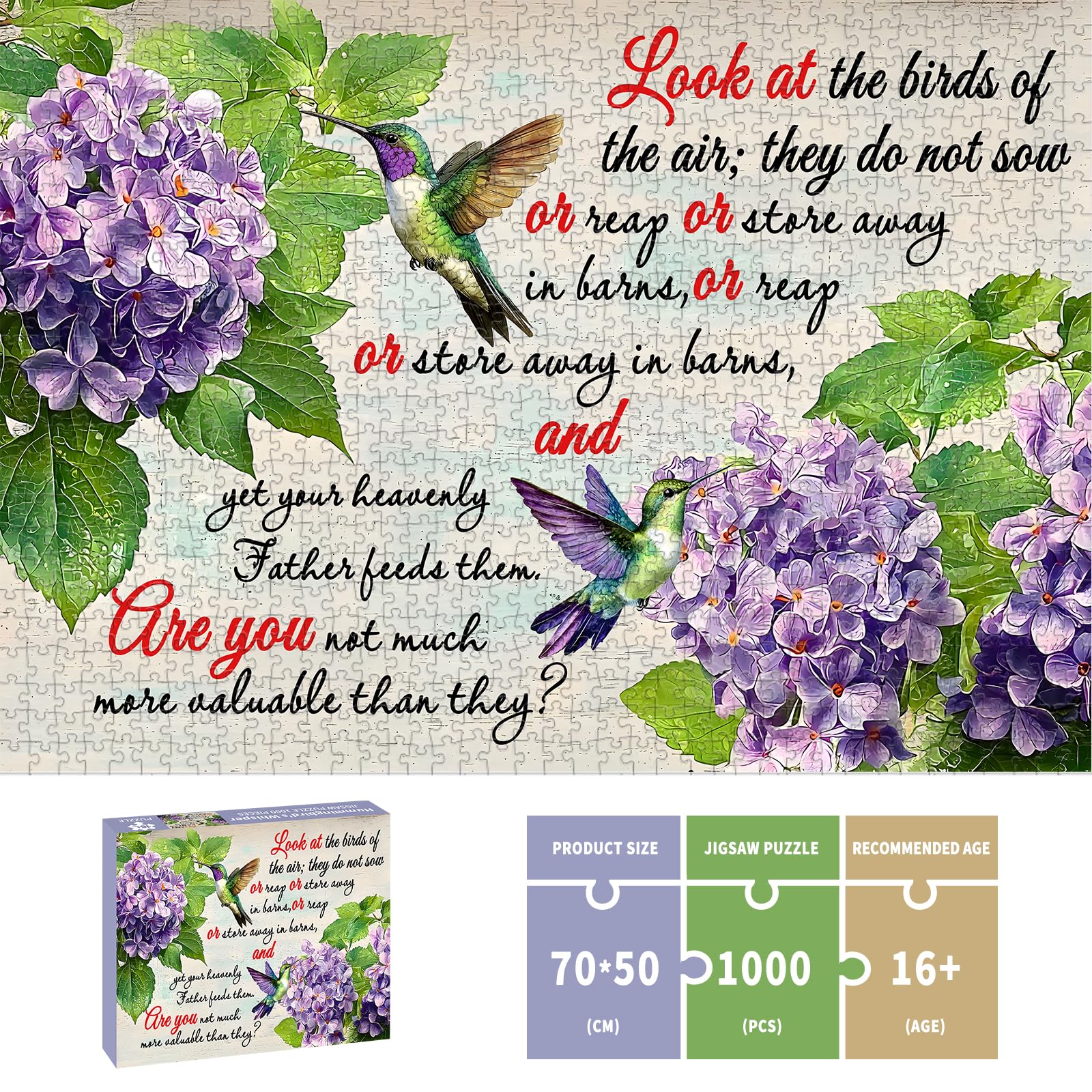 Puzzles for Adults 1000 Pieces, Christian Bible Jigsaw Puzzles - Hummingbird's Whisper, Impossible Christian Bible Puzzle For Seniors Families, 27.56x19.69 Inches, 1:1 Poster, Letter on The Back
