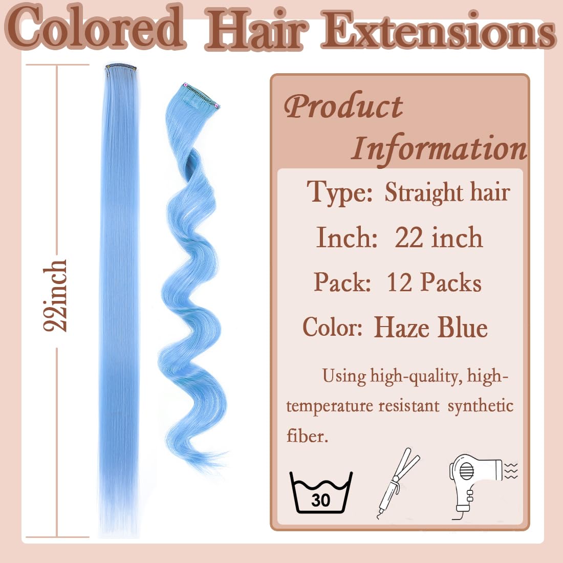2. High-quality material: Using high-quality high-temperature resistant synthetic fibers, it is harmless to the human body. You can use a curling iron or a straightening iron to redesign your hairstyle according to your personal preferences. The colors are rich and varied, which can replace hair dyes and reduce the damage of hair dyes to the hair and scalp.