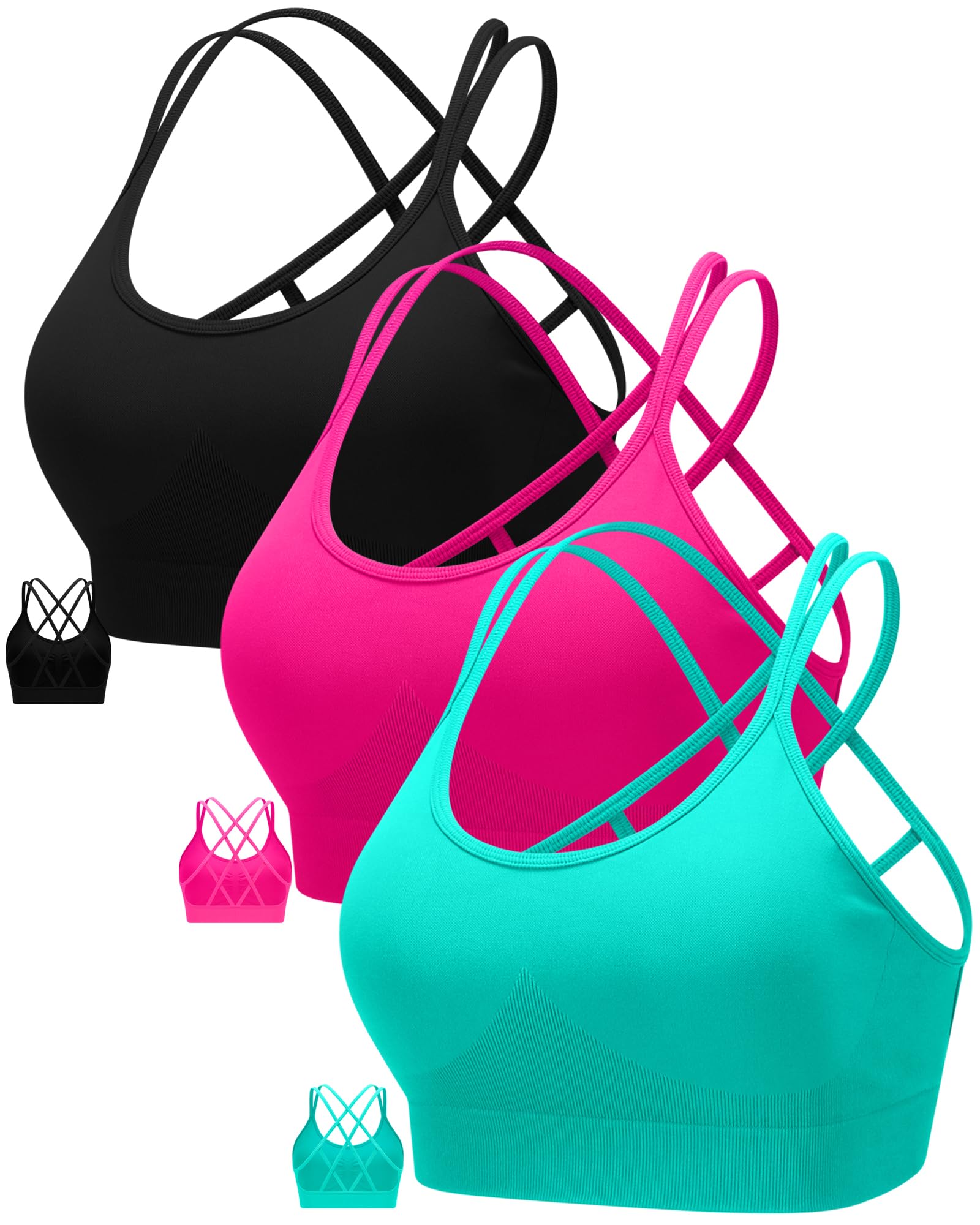 【EYE-CATCHING CONFIDENCE】Celebrate your fitness journey with the Everyday Cross Over Sports Bra.Designed with upper body workouts in mind, this sports bra is your go-to choice for highlighting the strong back you've been sculpting.Delicate crossover straps at the back and a flattering scooped neckline come together to give you an elegant and attractive look. It's crafted from sweat-wicking fabric and the elastic underband provides the essential support you need for those heavy lifting sessions.