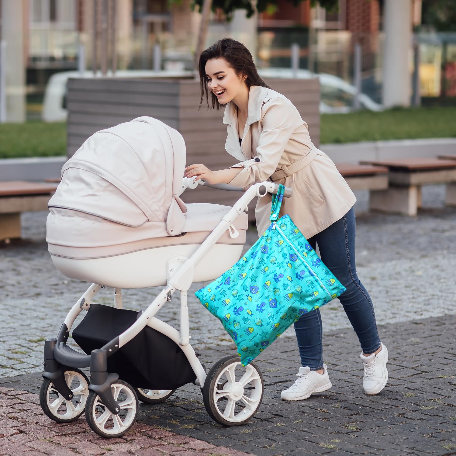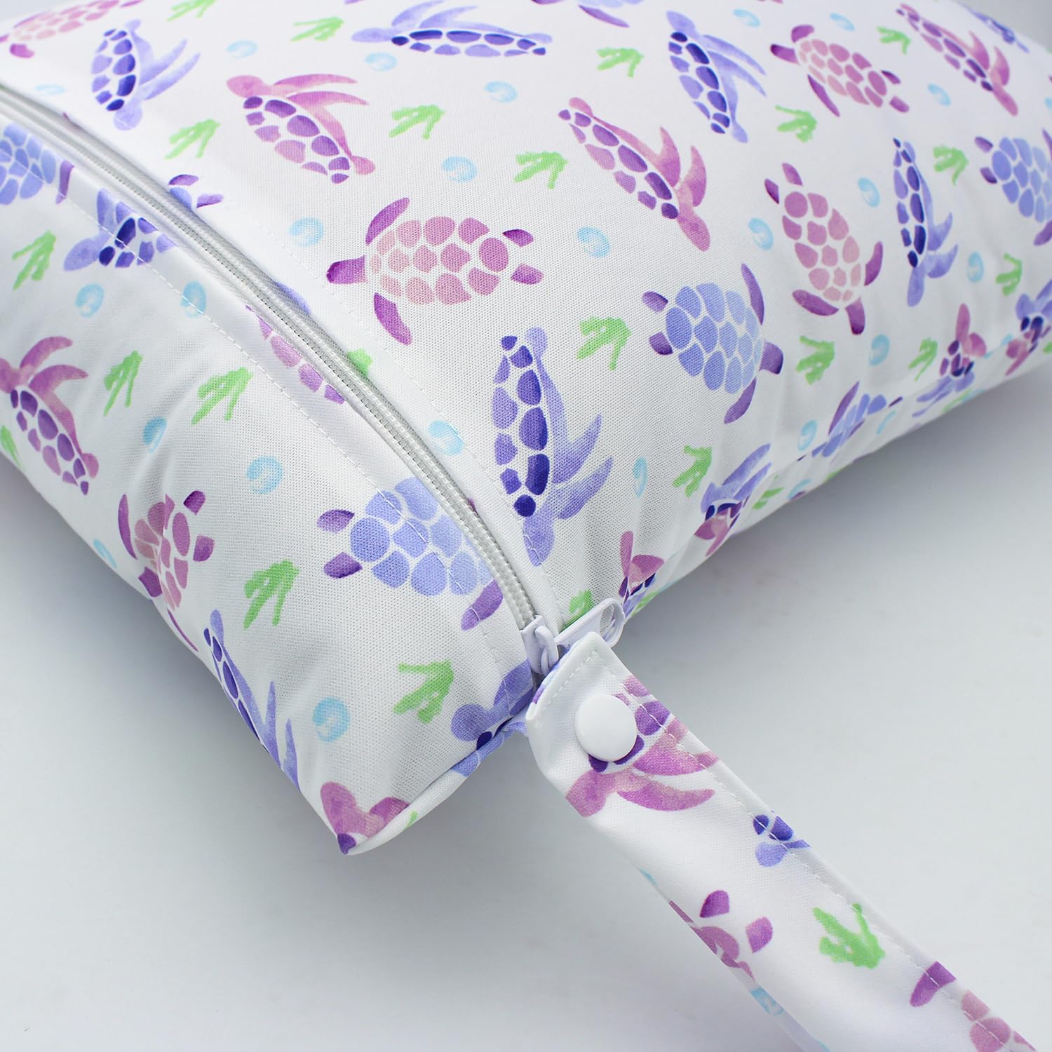 Material: Outer layer of wet bags are knitted printed flat cloth, inner layer is attached with breathable and waterproof coating, soft to touch and silky feeling, safe to preserve baby products, not easy to break, light in weight, easy for you to take.