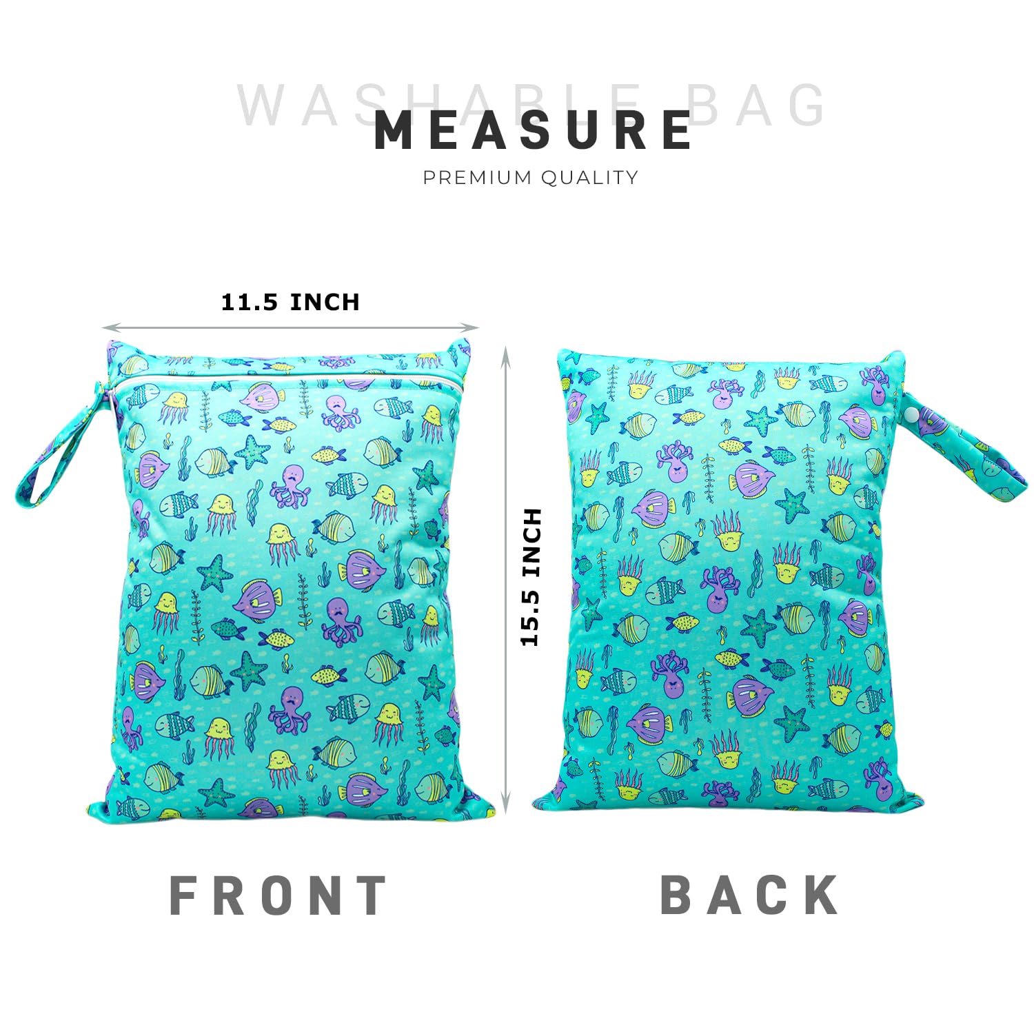 Large Space: You will receive 2 pack wet bags, size is 30cm x 40cm (approx.:11.5 in x 15.5 in), enough to put about 5-7 cloth diapers, can be also used to place swimsuit, workout gear etc<br> Tips: Wet items must be wrung out before placed in the bag, excess water may cause leaks through the seams.