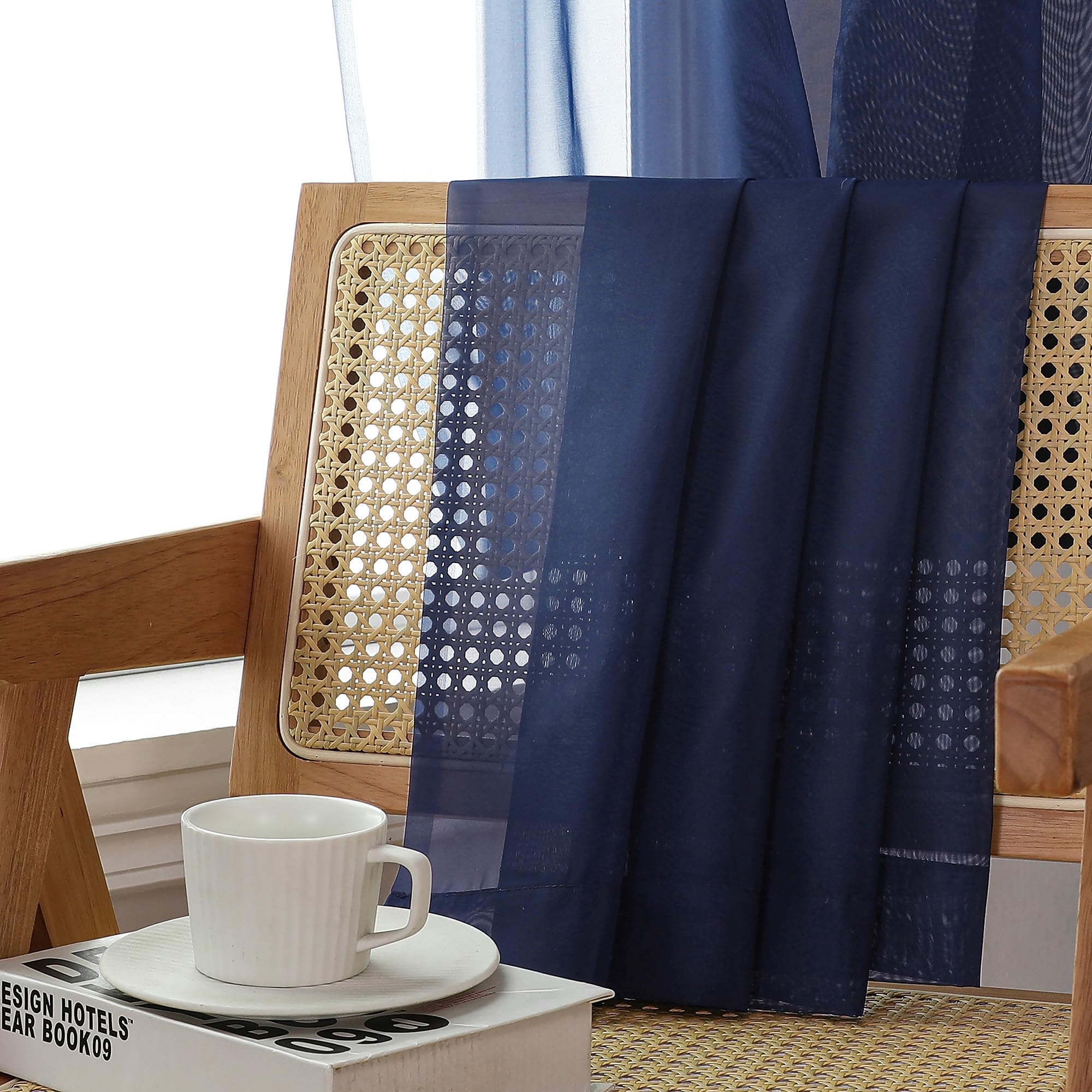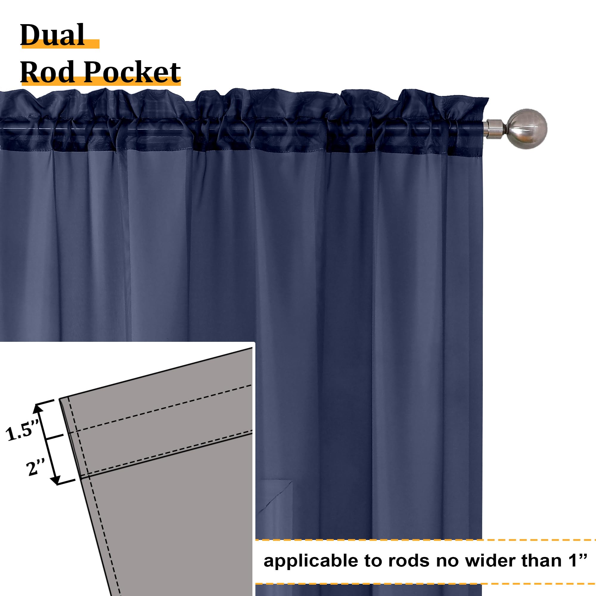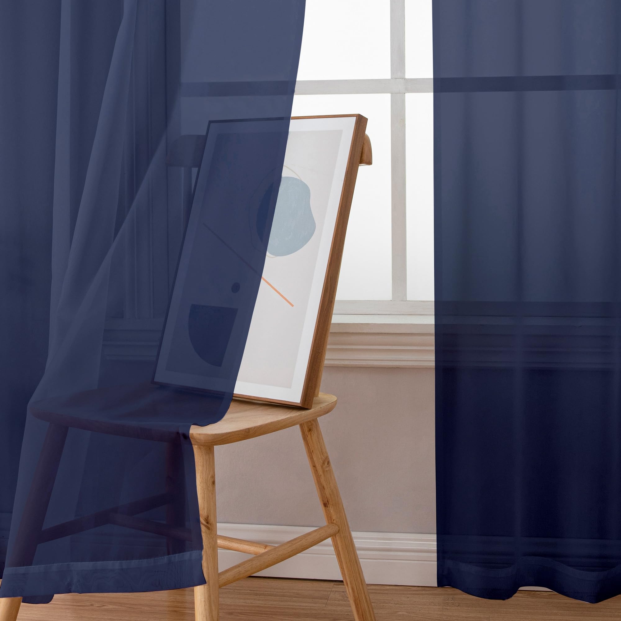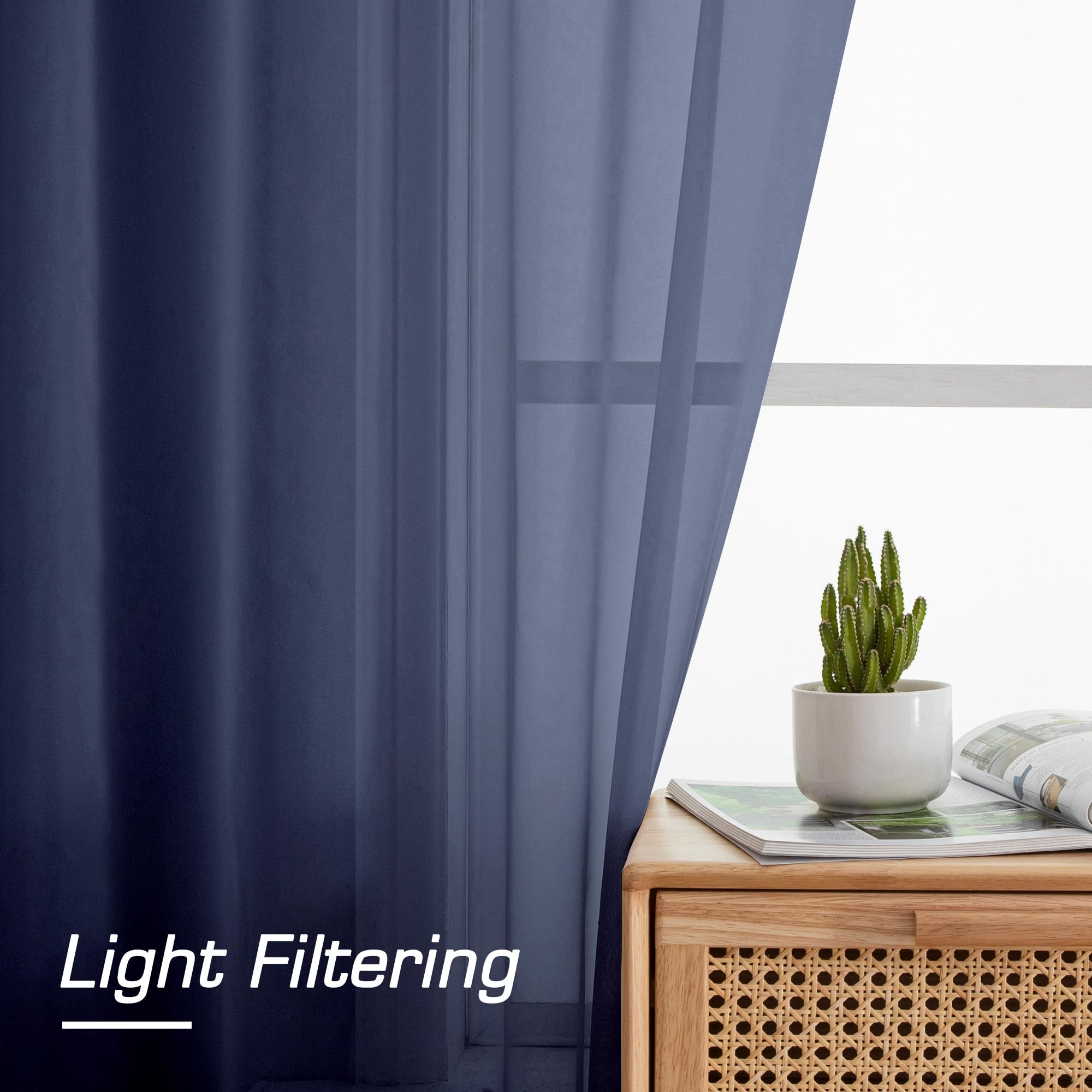Premium Semi Sheer Curtains:Navy Blue sheer curtains are with high twist yarn and unique fluffy weave, which is airy breathable and very pleasant to the touch, solid sheer voile curtains smartly invite sunlight to come through. It will add to the aesthetic and elegant value of your room.