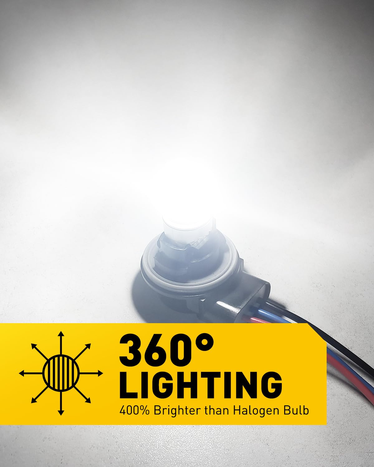 【Ultra Bright & Safer Upgrade】 AUXITO white 7440 led bulbs utilize newest powerful and high quality 3030SMD led chips. Generating 4 times brighter output and larger lighting area than halogen, see more clearly when reversing. Keep safe