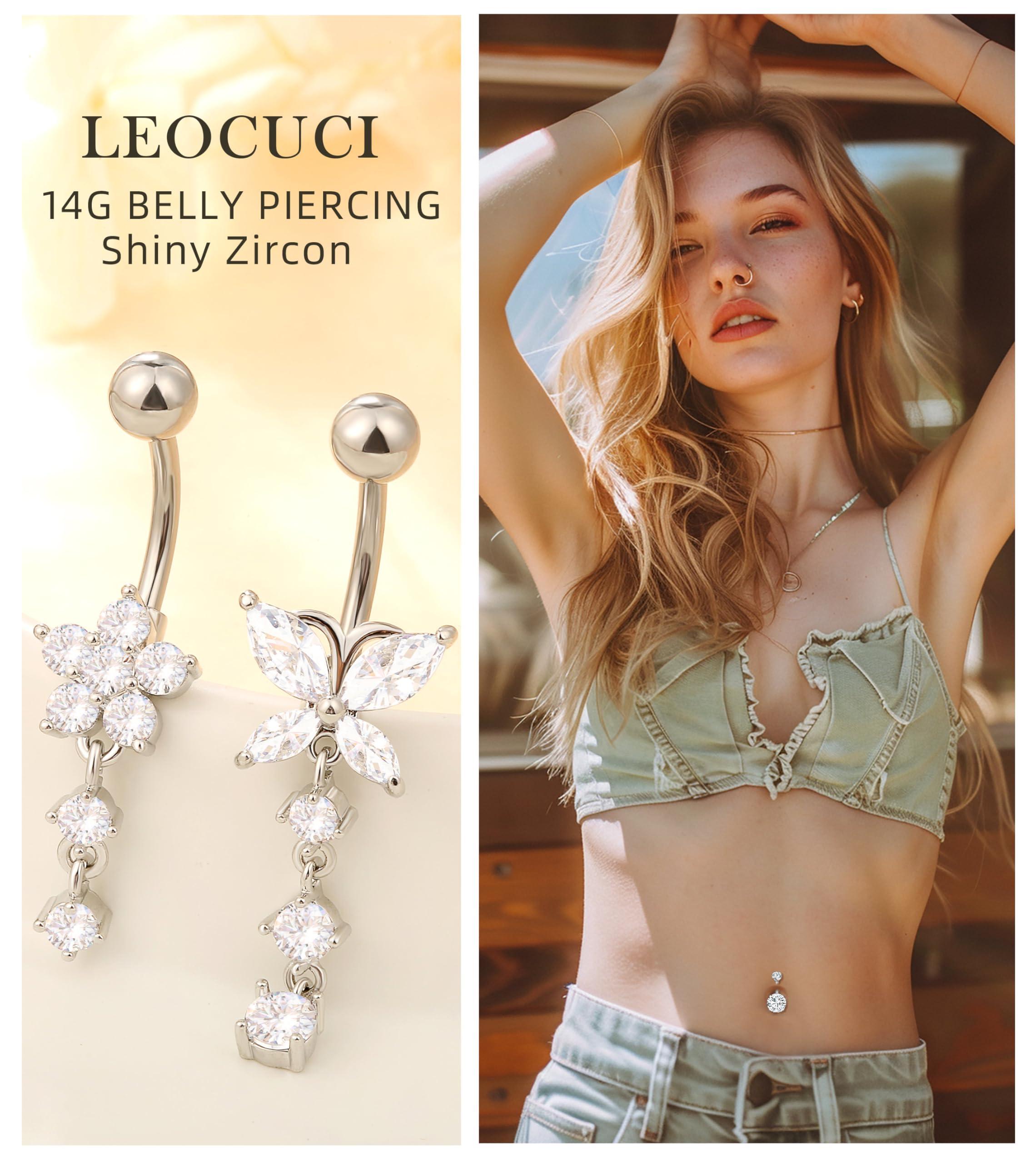 Exquisite belly button piercing jewelry: Elevate your style with our Leocuci Surgical Stainless Steel Dangle Belly Button Rings, designed specifically for belly button piercings.