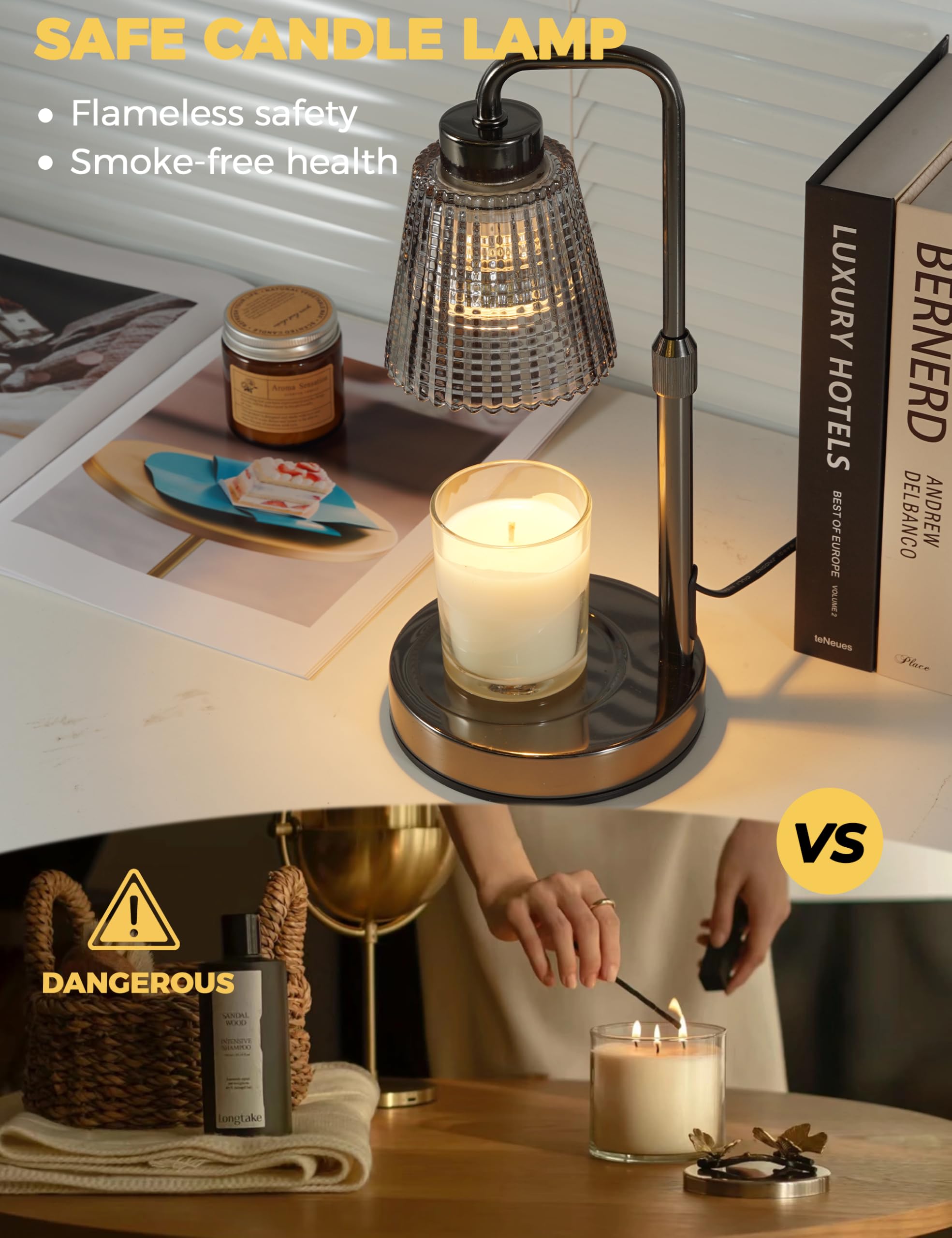 Safety and Environmental Friendliness: Our electric Candl Warmer Lamp gently melting the candle from the top down. With no open flame, it eliminates concerns of flame, smoke, soot, and pollution. Ideal for homes with children and pets, it offers a safe and clean ambiance for households, apartments, and offices.