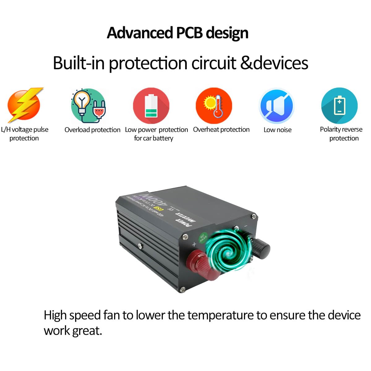 SMART SAFETY FOR PEACE OF MIND: Aluminum alloy casing withstands vehicle vibrations + built-in triple protection (overload/short-circuit/overheat). Auto-cooling fan prevents shutdowns during extended use. No more worrying about blown fuses!