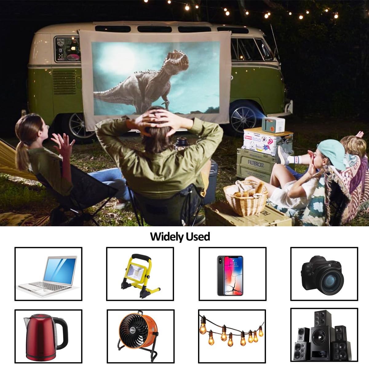 HIGH-CAPACITY DUAL POWER INPUT: Safely powers your essential devices on the go. This car inverter efficiently converts 12V DC to 110V AC, delivering 300W continuous modified sine wave power. Perfect for laptops, tablets, TVs, fans, string lights, game consoles, and charging cameras/drones. (NOTE: Not for high-power appliances like kettles, coffee makers, or refrigerators).