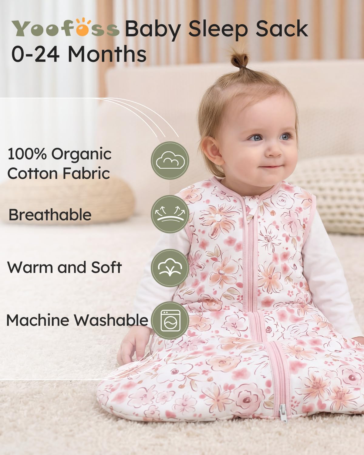 Safety Comes First: Made of 100% organic cotton layers and soft polyester filling , soft and breathable, guaranteeing the utmost comfort and the protection of infant's sensitive skin. Yoofoss sleep sack is certified to meet Global Organic Textile Standard (GOTS), dedicating to ensure your baby's safety and coziness.