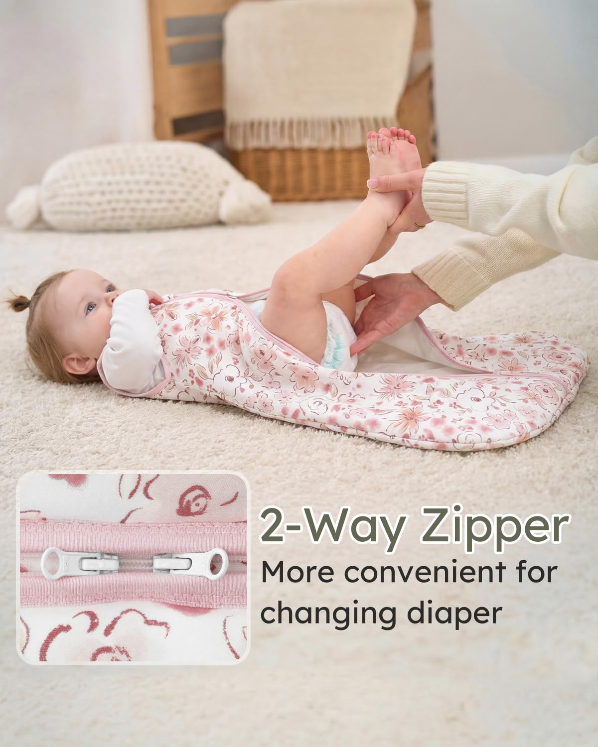 Large Space & Sleeveless: The ergonomically designed baby wearable blanket features a bell-shaped bottom to promote healthy hip joint development, spacious space allow baby to move more freely and stay comfortable while they sleep. Sleeveless design provides for greater flexibility and comfort, better regulates your baby's temperature and reduces the risk of over-heating.