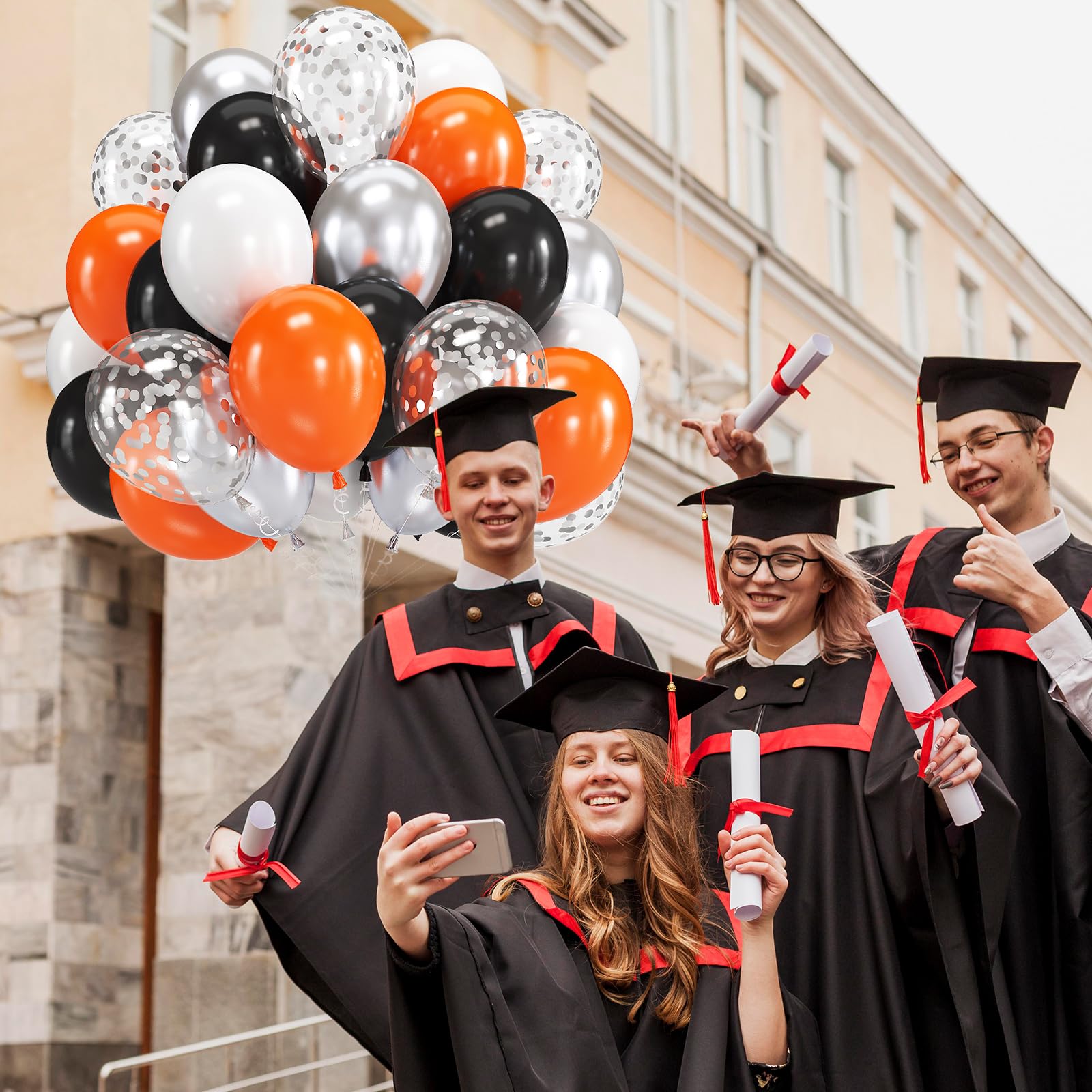 EASY TO INFLATE: Save time and hassle with orange black silver party balloons, which can be easily inflated with a hand pump or a high-quality helium tank, making party set-up quick and easy, no need to spend hours inflating balloons one-by-one, the filler can be water, air, helium or oxygen, stick the confetti to the side, make balloons look more beautiful
