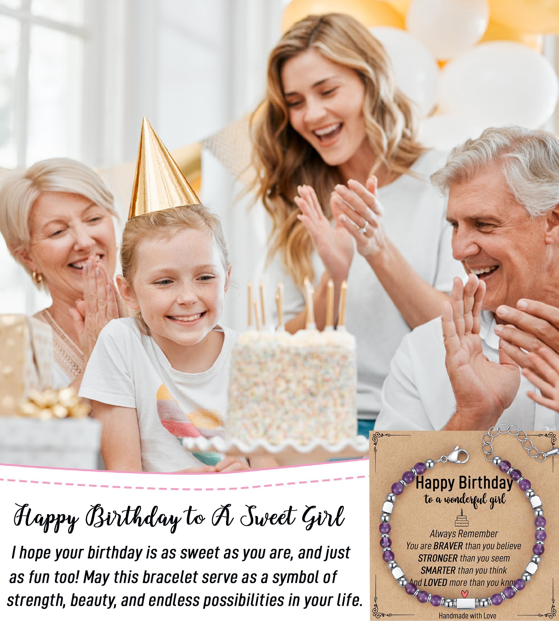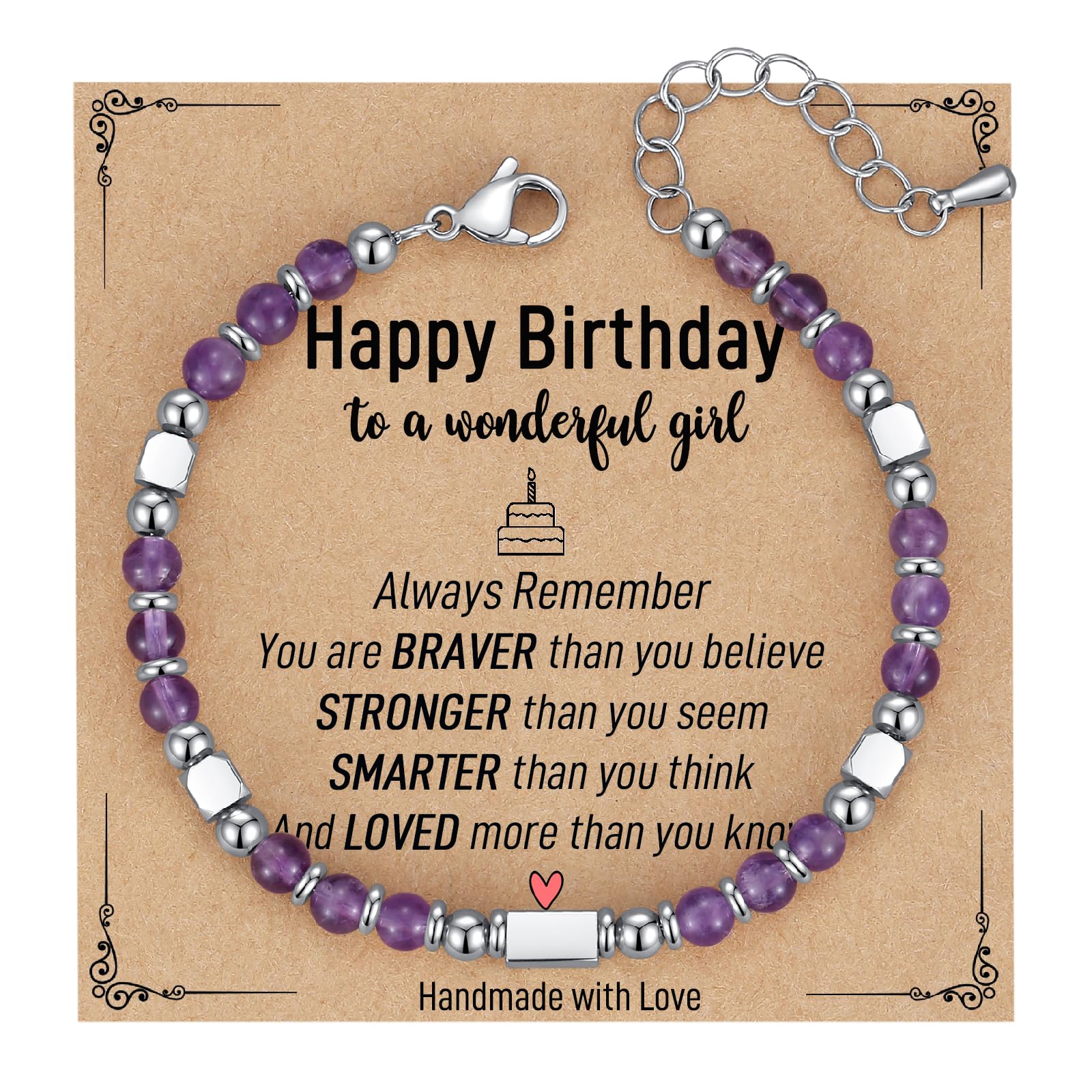Birthday Bracelet for Girls: Combination of tiny gemstones and stainless steel beads, this pretty bracelet makes the perfect birthday gift for girls due to its unique design and natural stone meaning. Amethyst is said to absorb negative energy and replace it with calming and healing energy. Celebrate her birthday with this trendy bracelet, remind the girl always remember that she is brave, strong, smart, and beautiful! Work great as birthday gifts for women and girls.