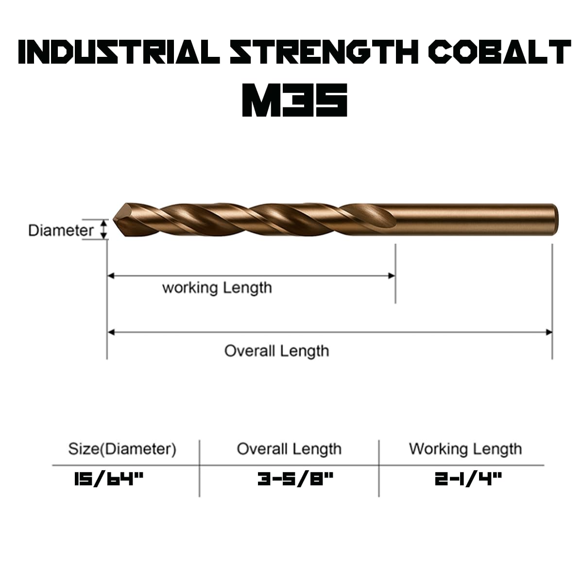M35, FULLY GROUND, 135° SPLIT POINT - Our Drill Bits Contain 5% Cobalt, Are Fully Grounded for a Precision Drilling Diameter. 135° Split Point Design Makes it Easier to Drill Repeated Holes in Harder Materials.