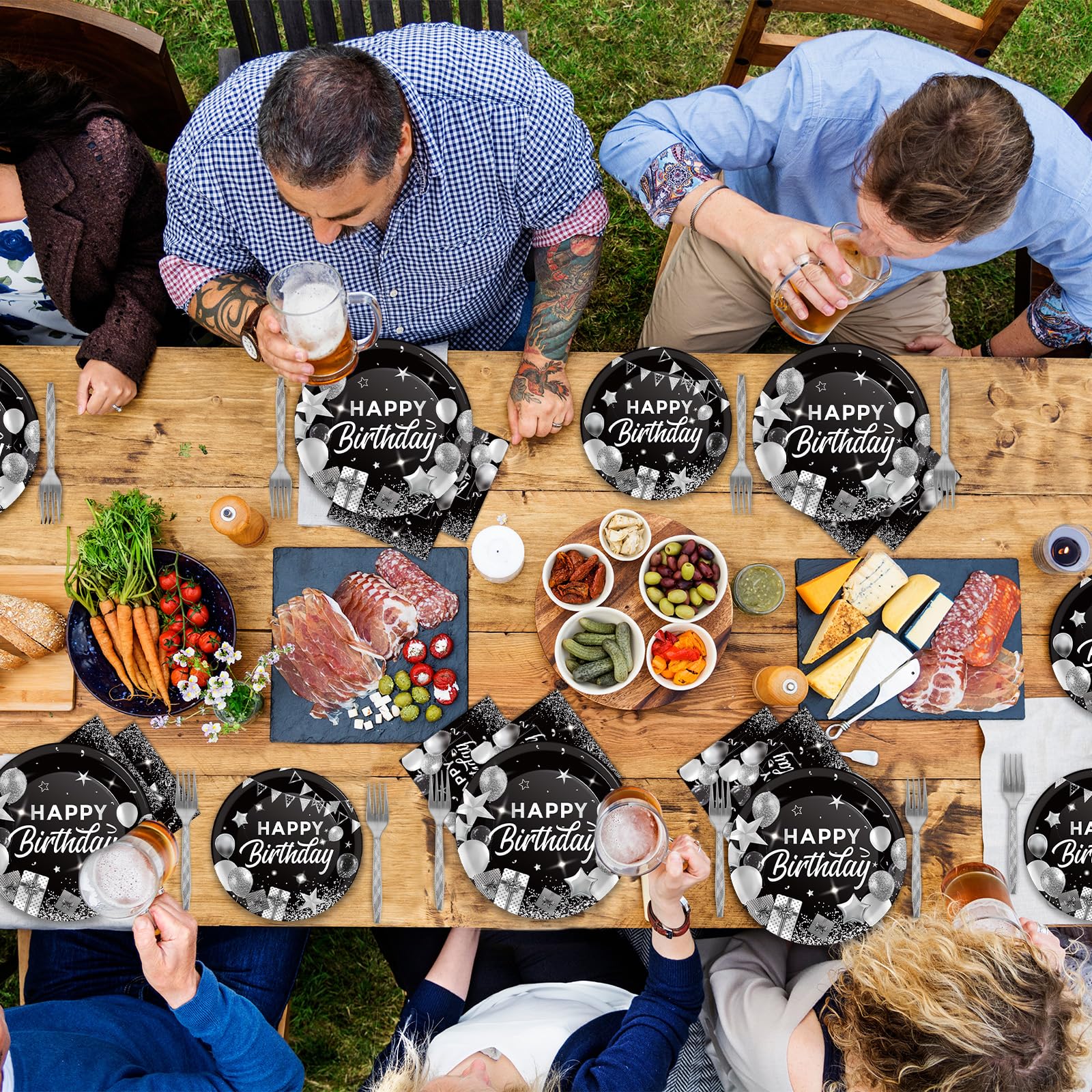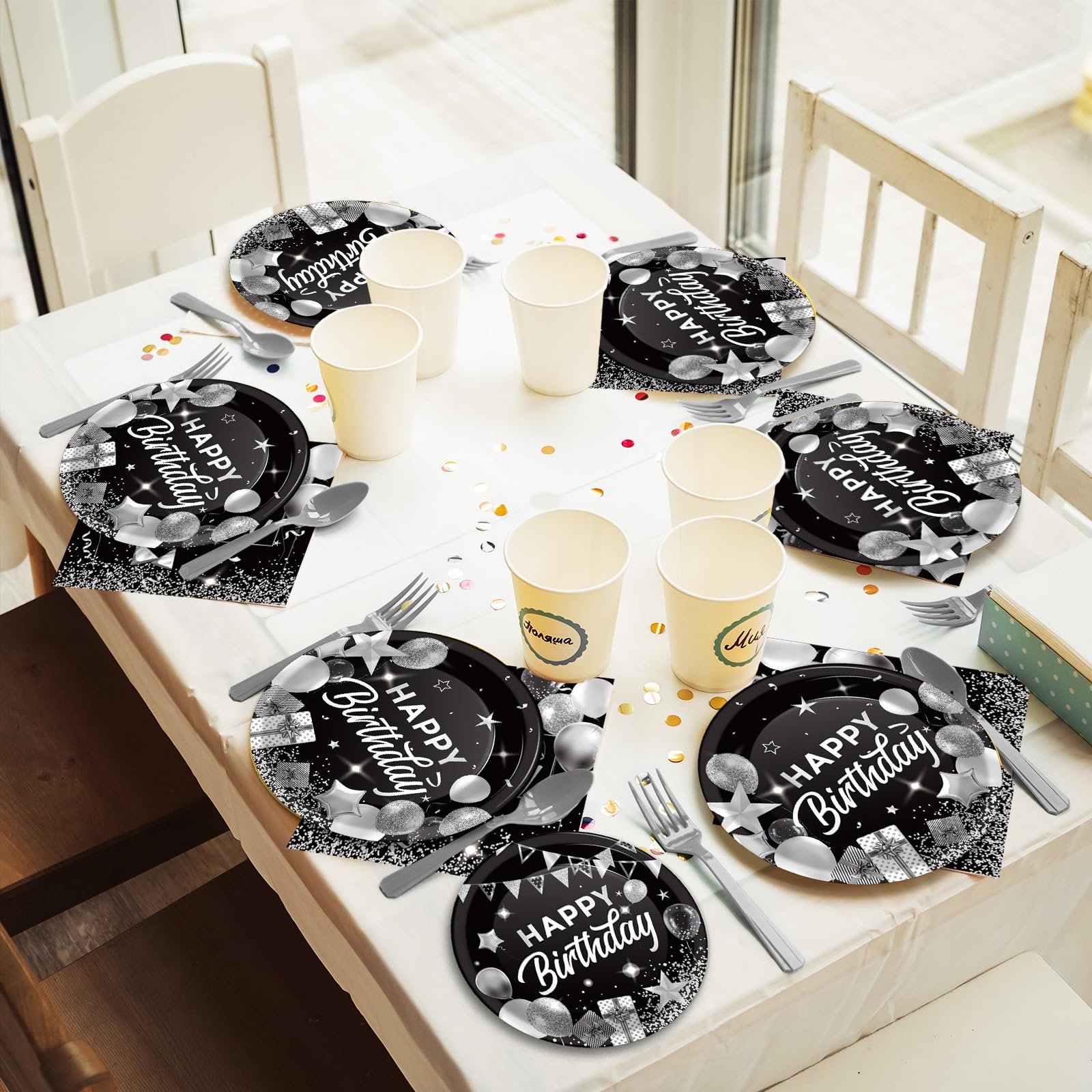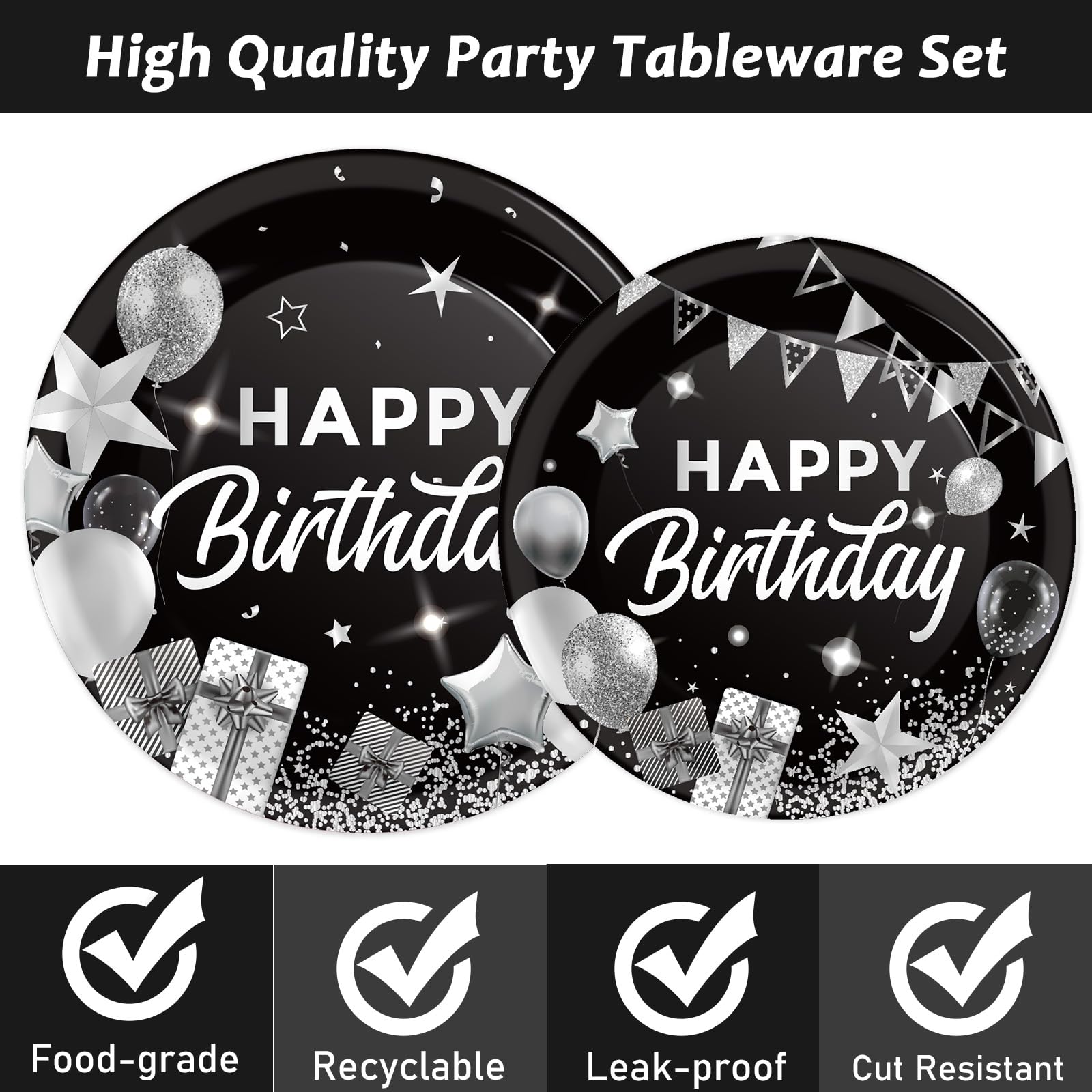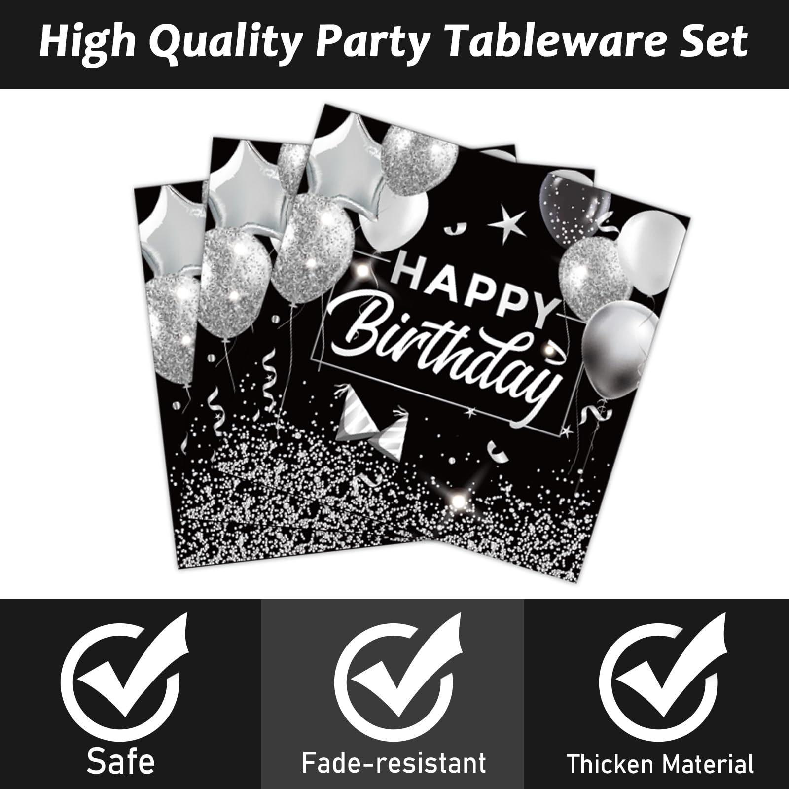 【Premium Material】All of our Black and Silver theme plates and napkins are made of quality paper, non-toxic, no smell, heat-resistant and durable. The pattern and color are well-printed and fade-resistant to provide you with a party that full of happy birthday atmosphere.