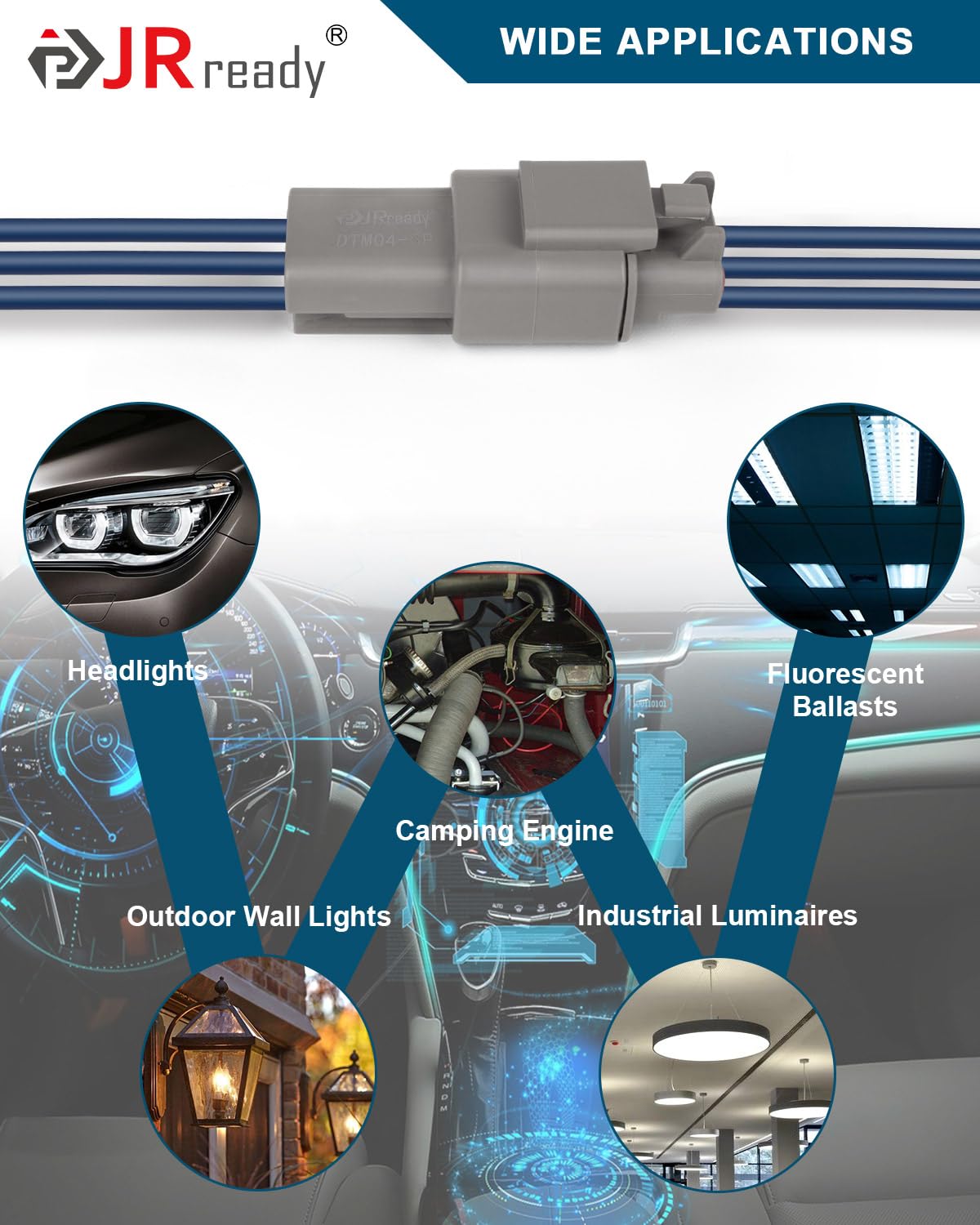 JRready DTM Connector Versatility: JRready 3 pin waterproof connectors suitable for various waterproof electrical connections of motorcycle, scooter, car, truck, quad bike, caravan, marine, jetski, boats.