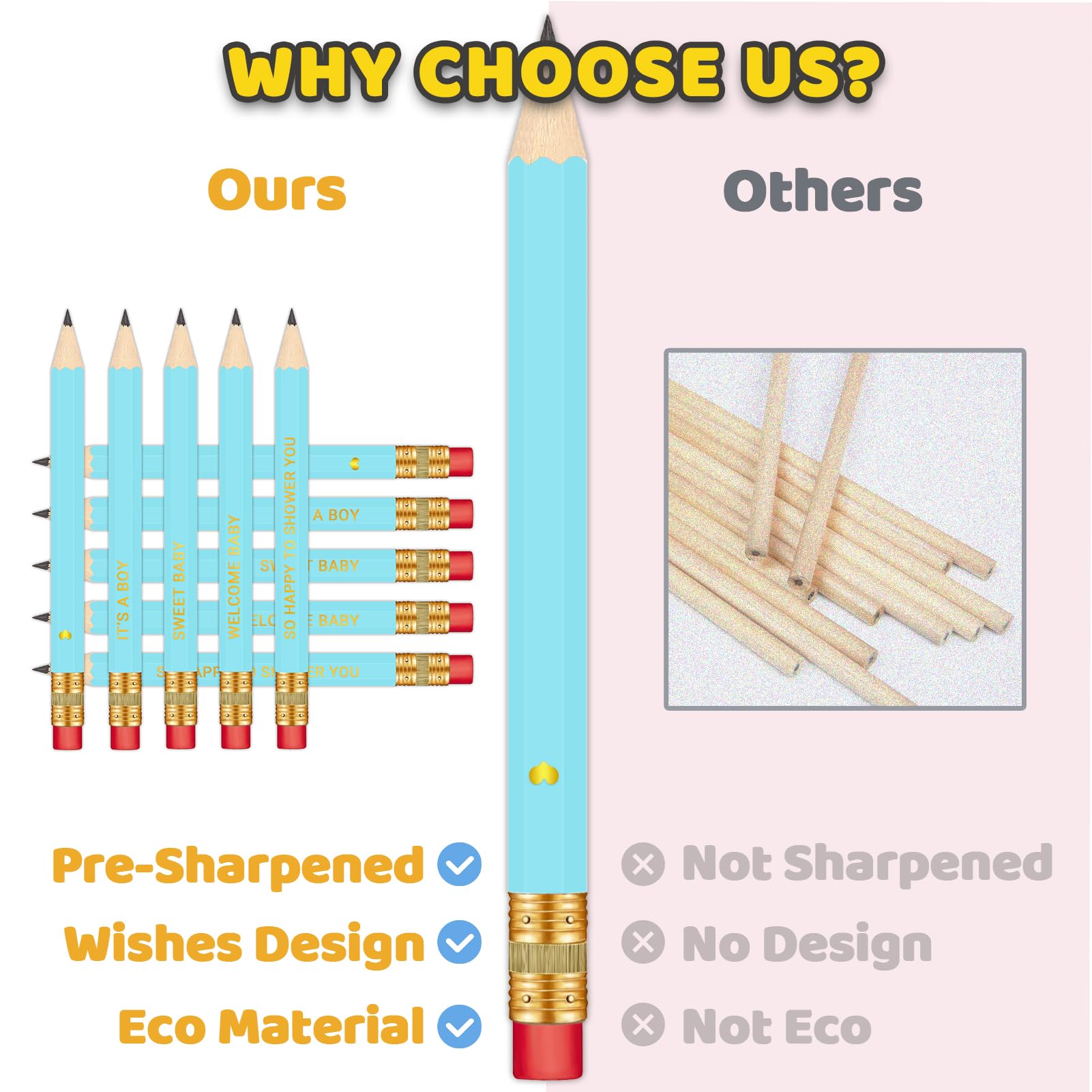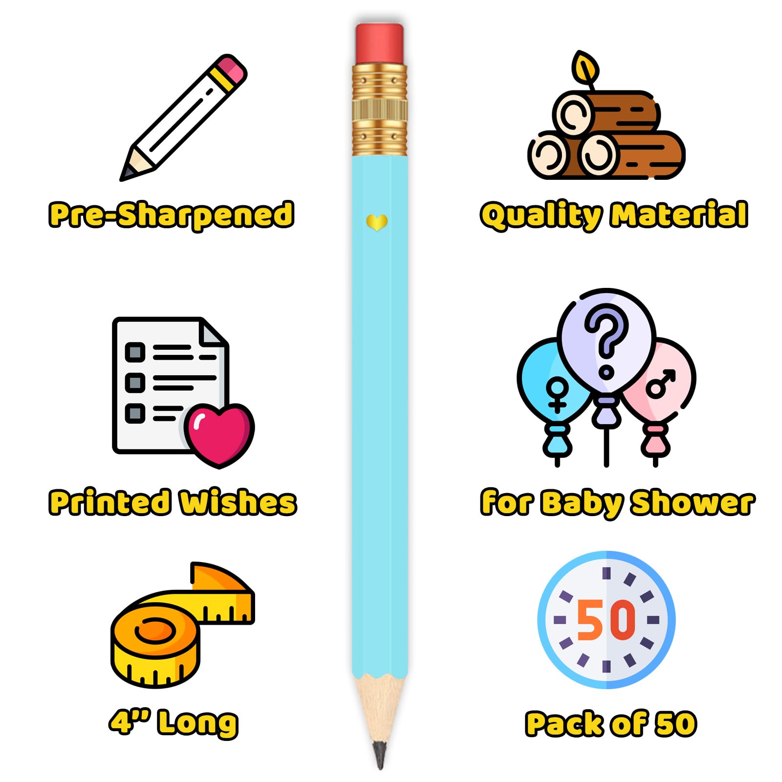 Vusnud 50Pcs – Baby Shower Sharpened Half Pencils with Erasers, Pre-sharpened Pencils for Baby Shower Games, 4 Inches