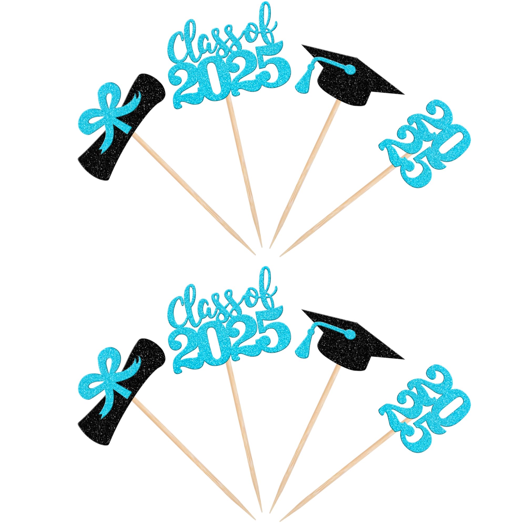 2025 Graduation Theme Party Cupcake Toppers Decorations Perfect for 2025 graduation theme party cupcake decorations, such as kindergarten, primary, junior, senior high school, college, Master or Ph.D. graduation . Pack of 36 pcs, 9 pcs of each color. The size is 2.2*3.7/ 2.3*4.1/ 2.2*3.7/ 1.3*4.1 inch( with stick ) Made of high quality glitter paper card stock,thick and thick and sturdy. These cupcake toppers are single glitter, the back is white, and they are intended for decoration only, please do not put them in oven or microwave. If the item you received has any defects, please contact us immediately.we will deal with it within 24 hours.