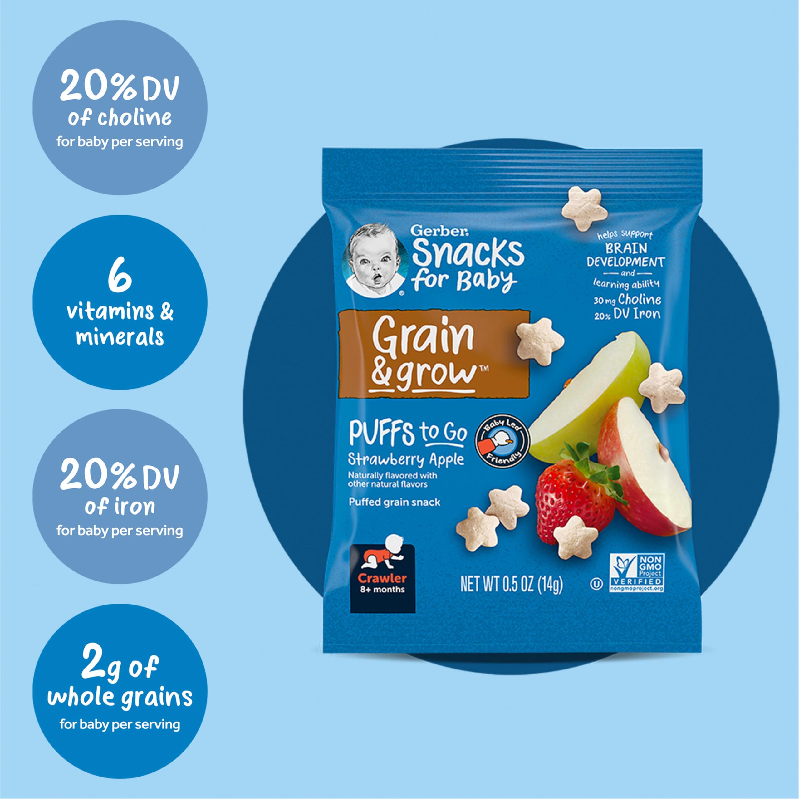 Grain & grow Puffs have 2g of whole grain goodness and 6 vitamins and minerals for growing babies & toddlers.