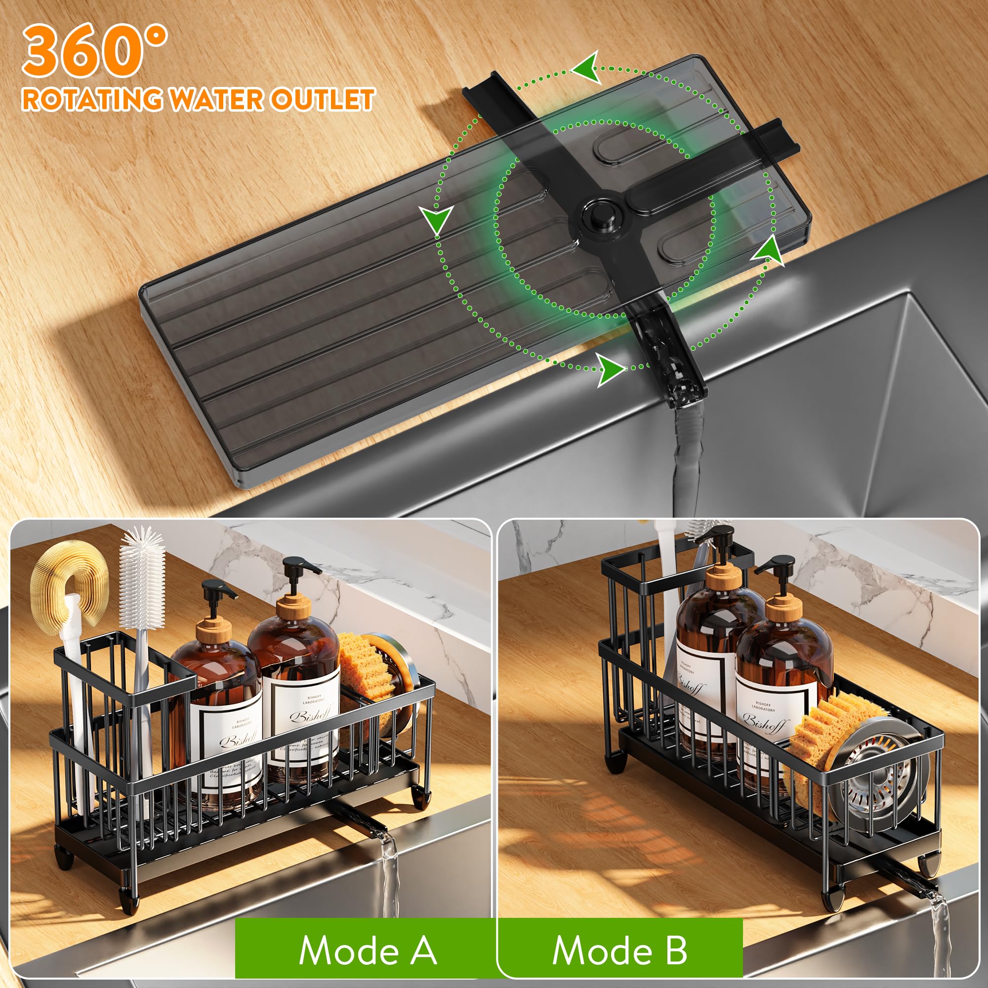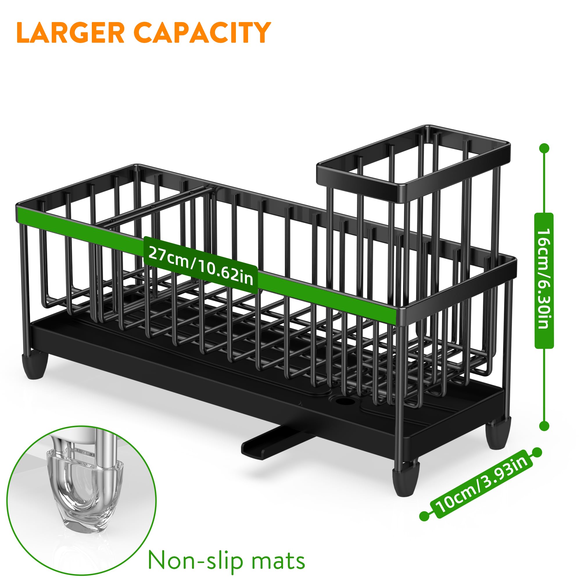 【NON-SLIP & HIGH STABILITY】Our sink organizer is made of premium metal, thick metal construction is heavy duty with high stability. Rubberized feet design prevents it form sliding around the counter a lot or falling into sink. Great organizer for soap, sponge, brushes and other accessories.