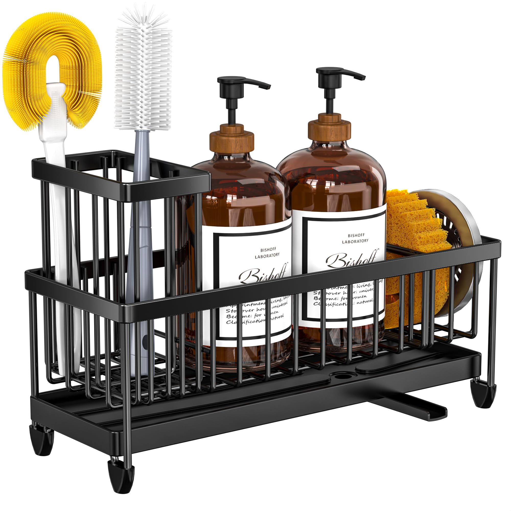 Cisily Extra Large Black Sponge Holder for Kitchen Sink, Sink Caddy Organizer with High Brush Holder, Kitchen Countertop Organizers and Storage Essentials, Rustproof 304 Stainless Steel, Soap Dispenser Organize
