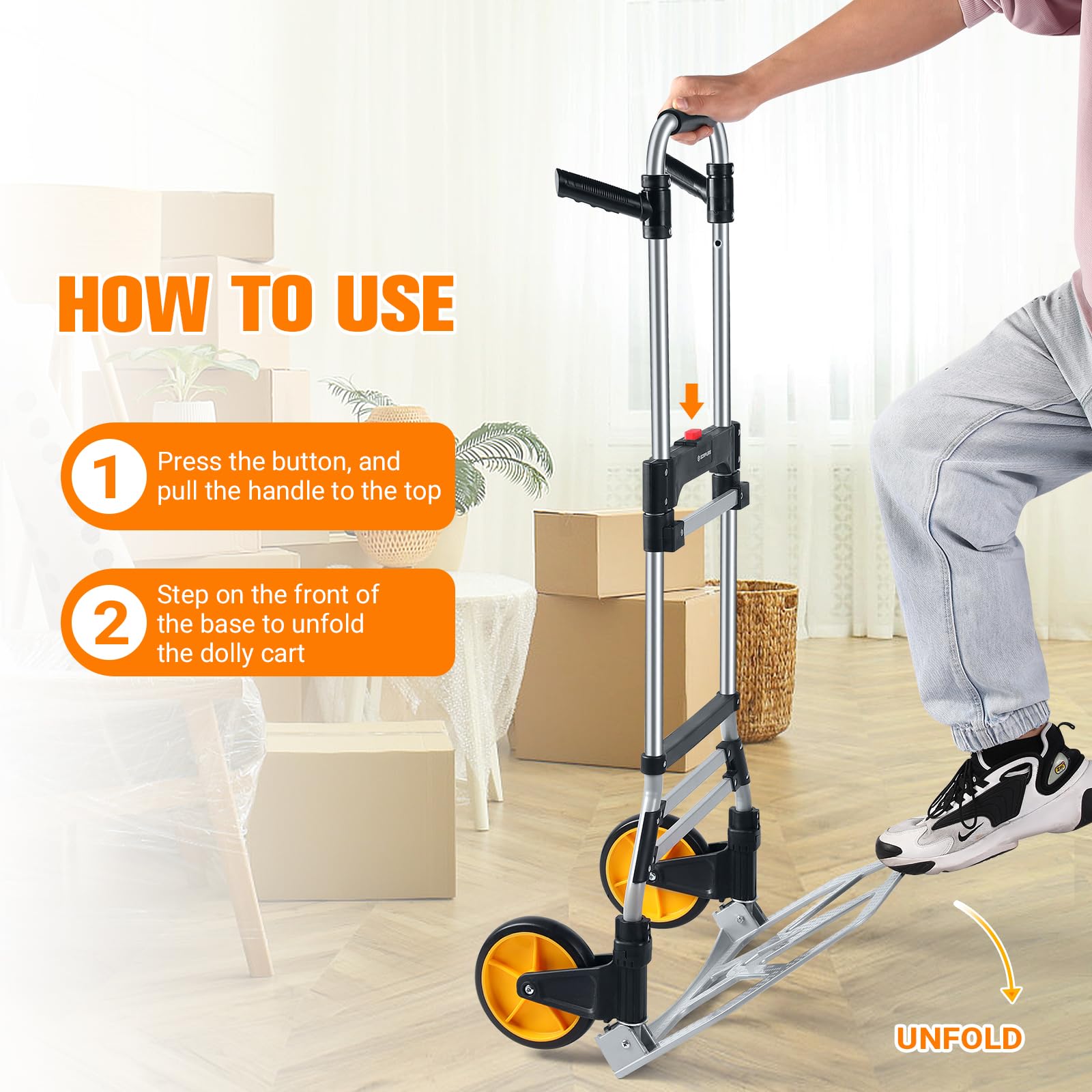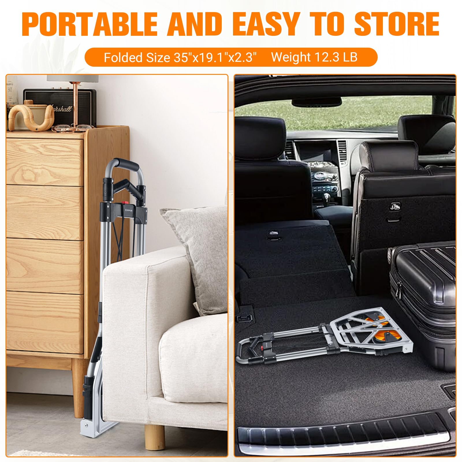 Ready to Use, Convenient and Effortless: This foldable hand truck requires no assembly—just unfold it and adjust the handle to get started. Weighing only 12.3 lbs, this 2 wheel dolly is easy to operate, allowing you to begin your moving tasks quickly and effortlessly, saving both time and energy