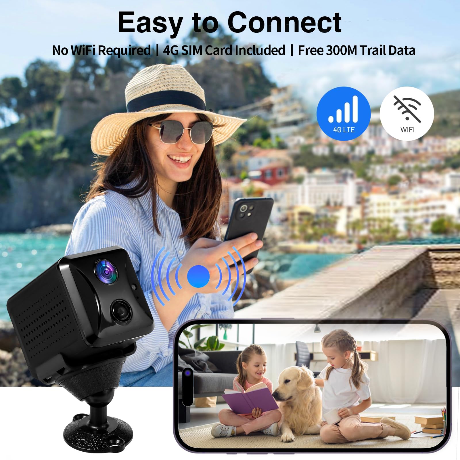 【Super HD & Wide-Angle View】Enjoy sharp 4K HD clarity up to 130ft with the advanced image processing technology, which adjusts to changing light for optimal image quality, even in low light. The 160° wide-angle view and 10x digital zoom cover more area and capture detailed images, helping you monitor effectively. At night, enhanced IR LEDs ensure you can see clearly up to 33ft. Unseen IR lights keep the small 4g camera from attracting attention at night. Upgrade your home security.