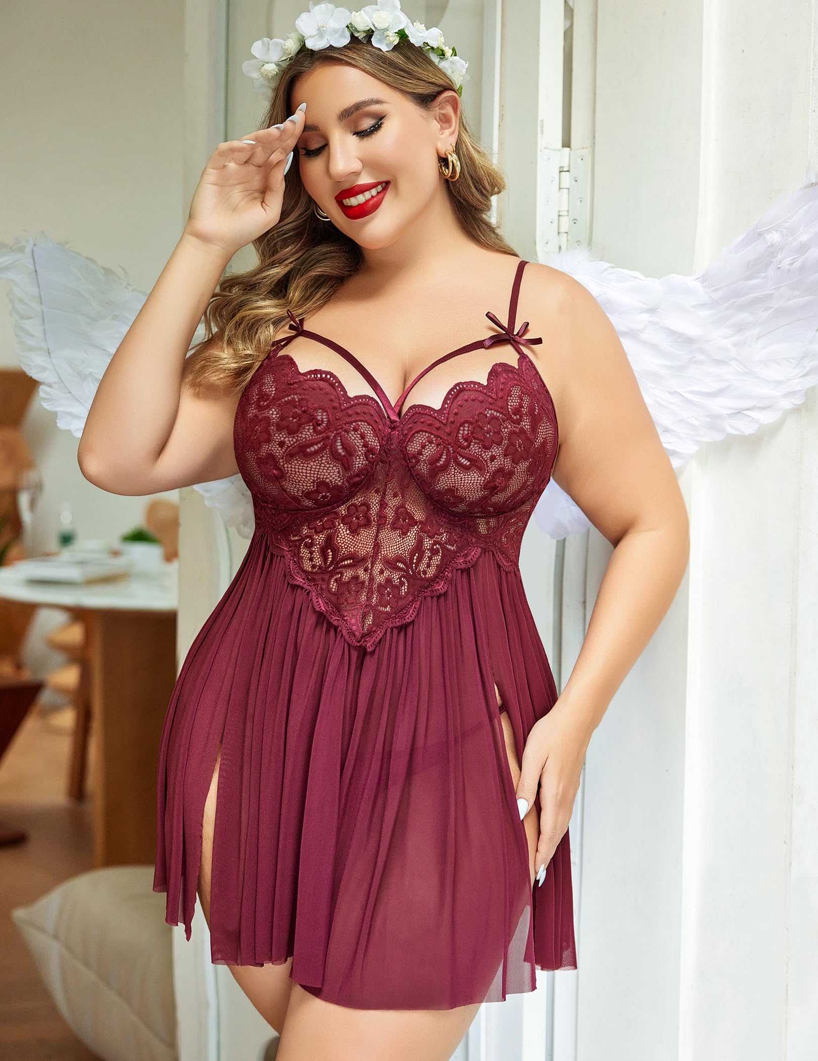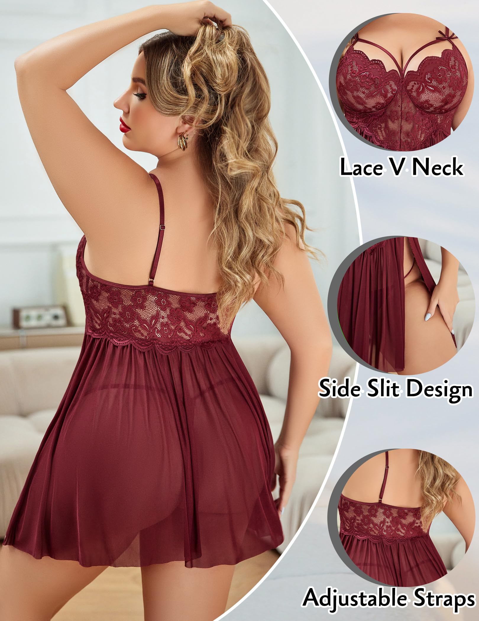 Material:Plus babydoll lingerie is made of high transparent soft lace material, unique style, comfortable and breathable.