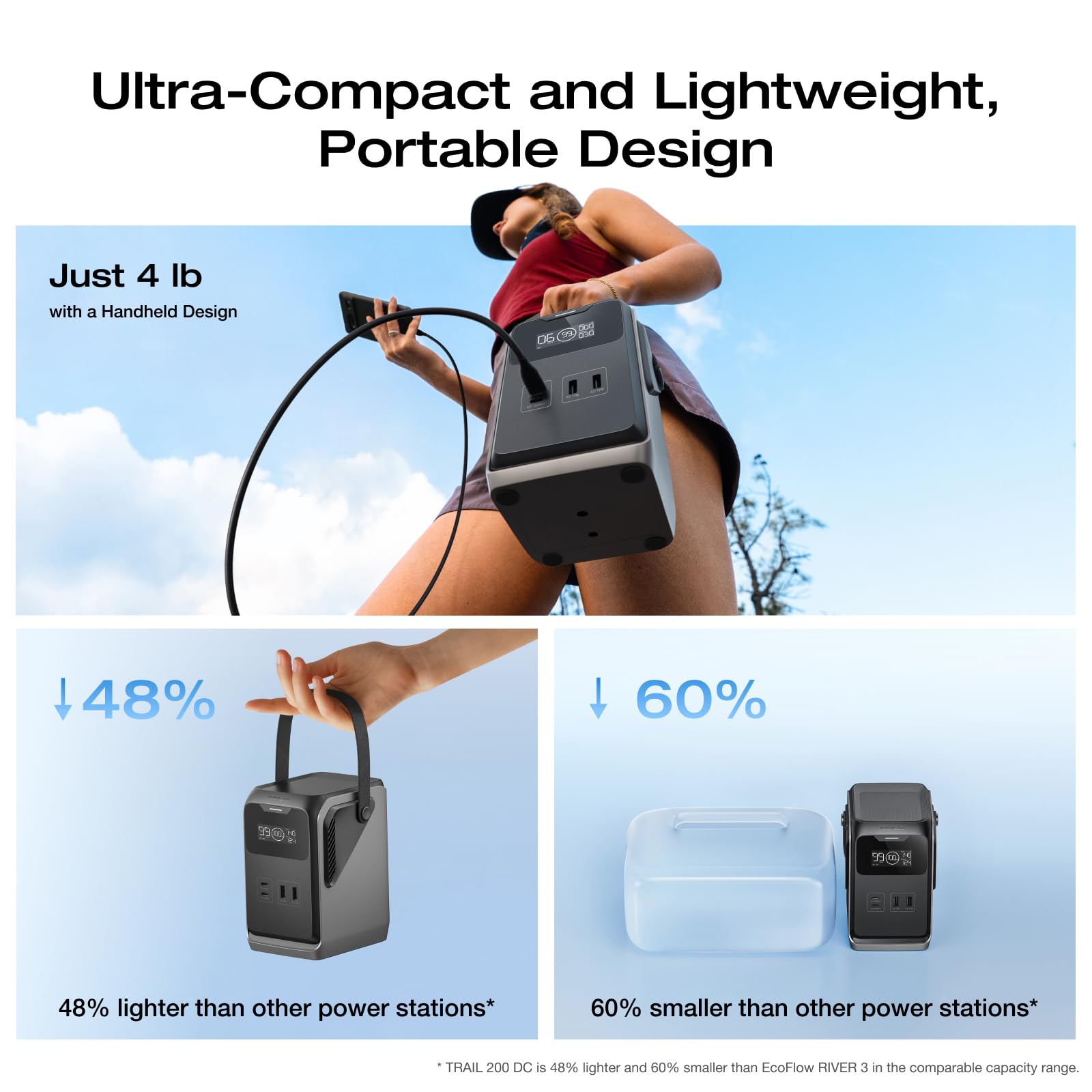 Ultra-Compact and Lightweight: 48% lighter and 60% smaller than other power stations in its class. The portable, handheld design is perfect for travel and camping.* * Compared with EcoFlow RIVER 3 at similar capacity