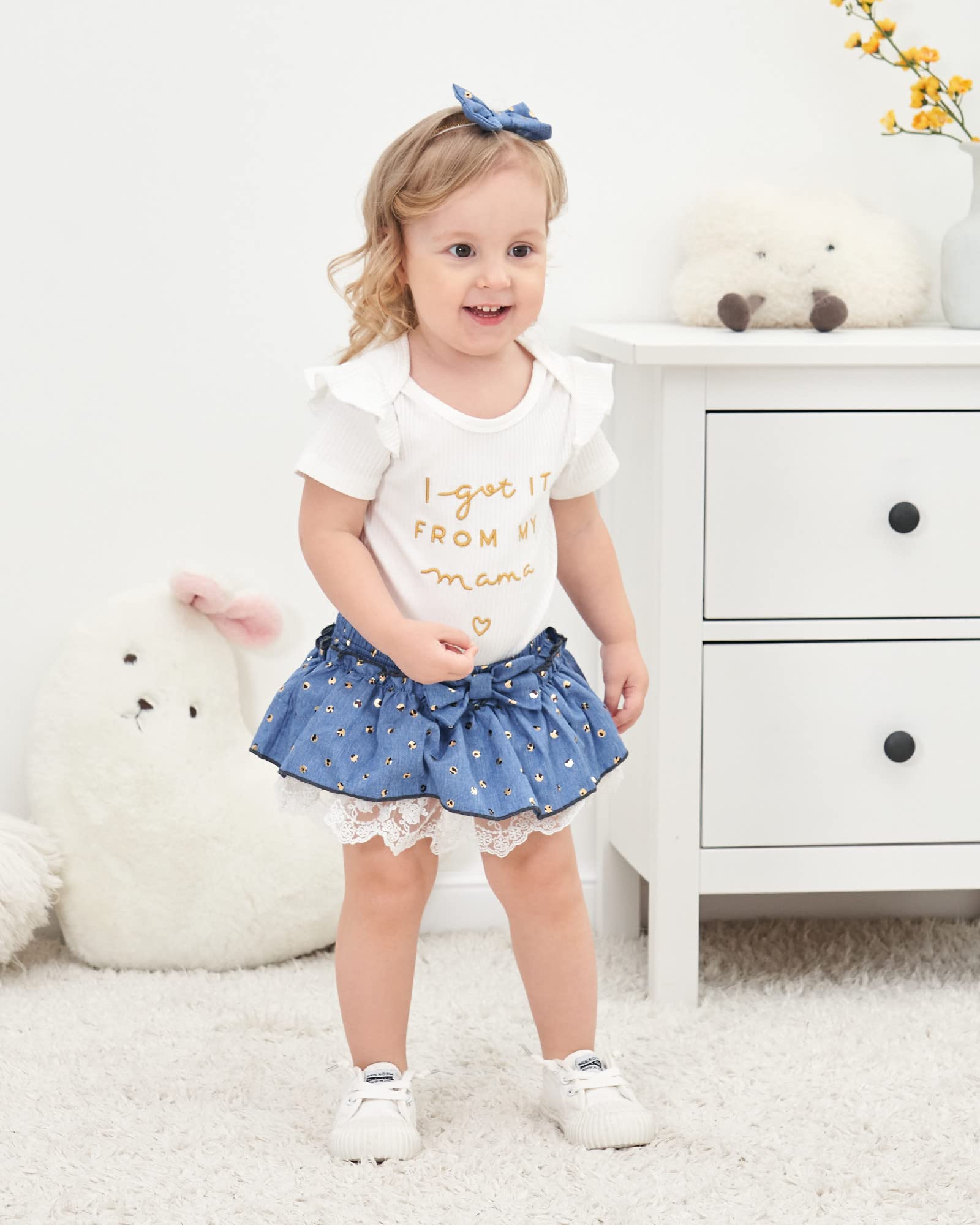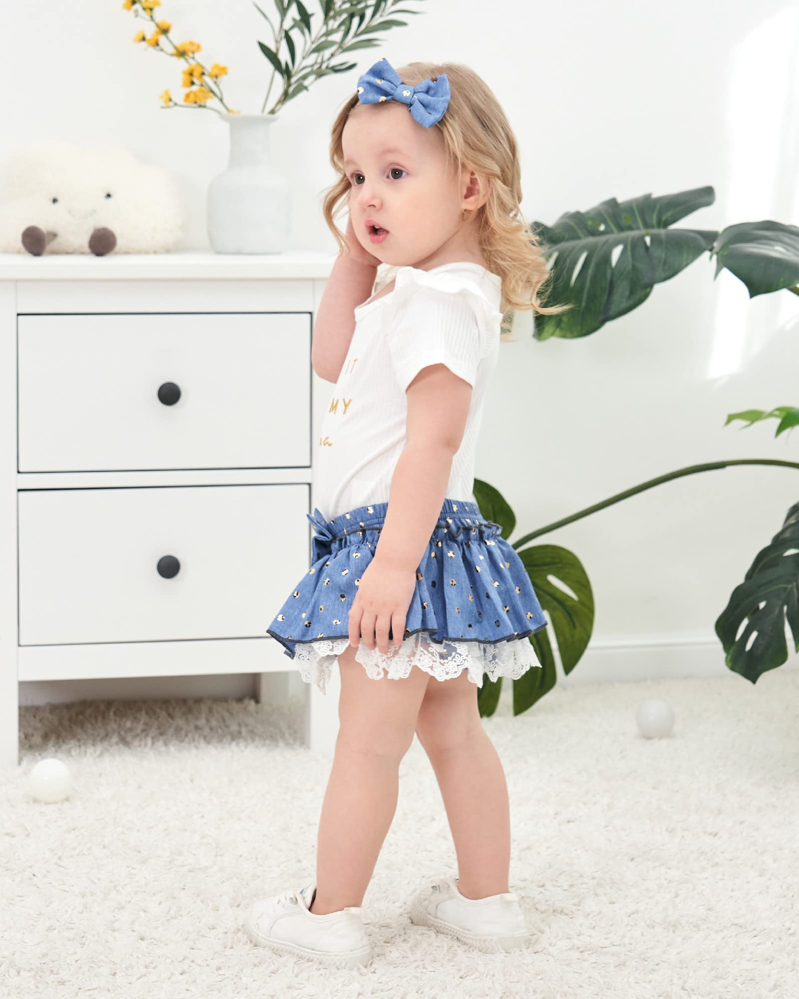 Great Quality: Cotton ribbed baby girl romper shorts set bring comfortable feelings. Soft, safe and harmless to baby's skin. Pretty baby girl clothes for gifts