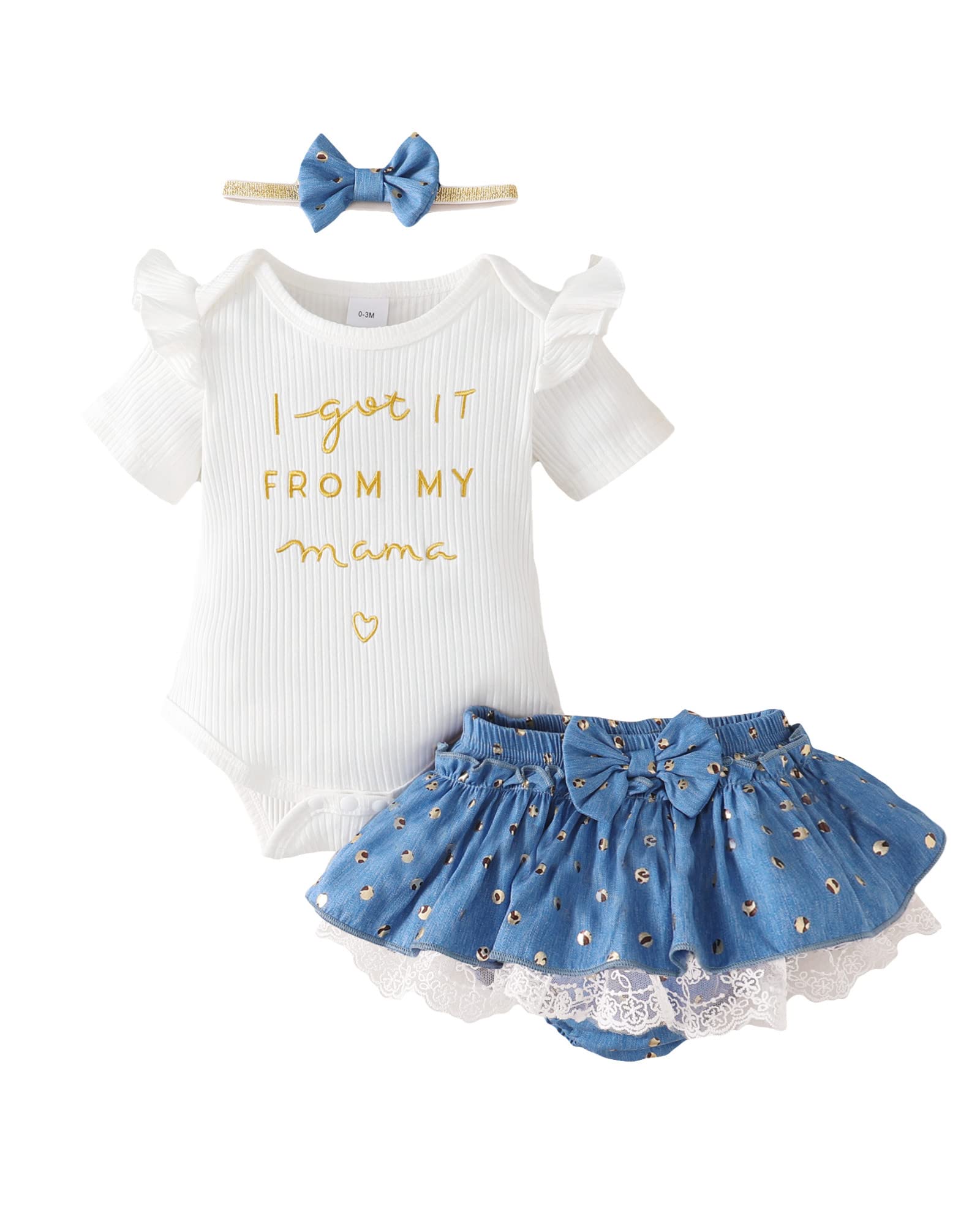 Novel Design: Lovely words express great love from family. Super soft and stretchy materials for comfortable dressing and sporting. Pure romper, ruffle princess shorts and matching headband create more appealing impression. Convenient Snap closure for easy diaper changes.