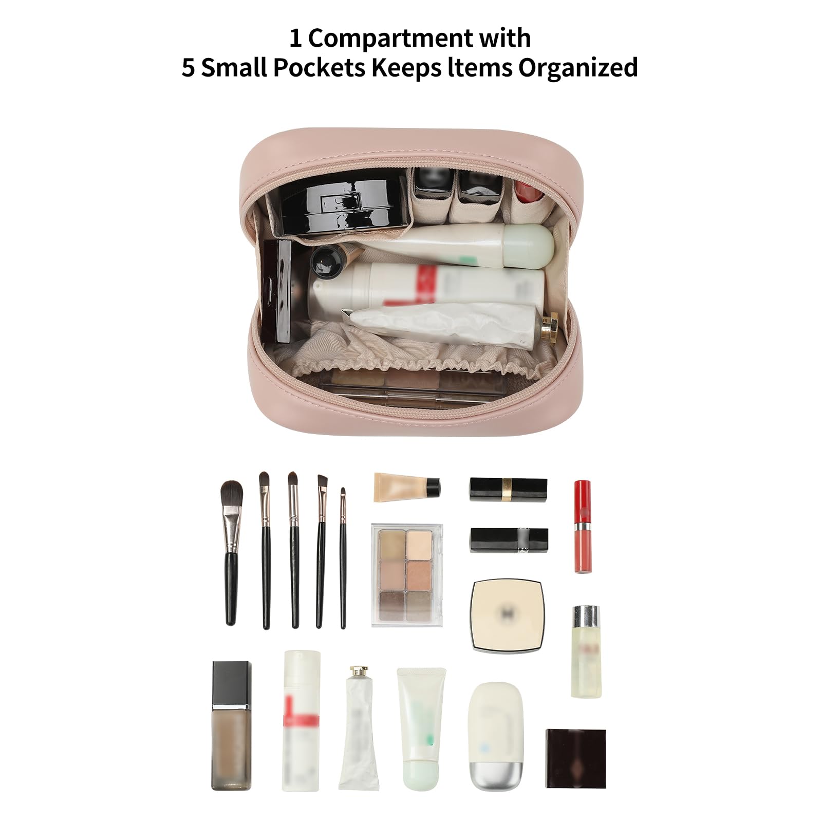 Multiple Compartments:Designed with 5 inner pockets + 1 main compartment, this organized cosmetic pouch keeps cosmetics, toiletries, and cords neatly separated. Everything stays visible and within reach, saving you time and hassle while enhancing convenience