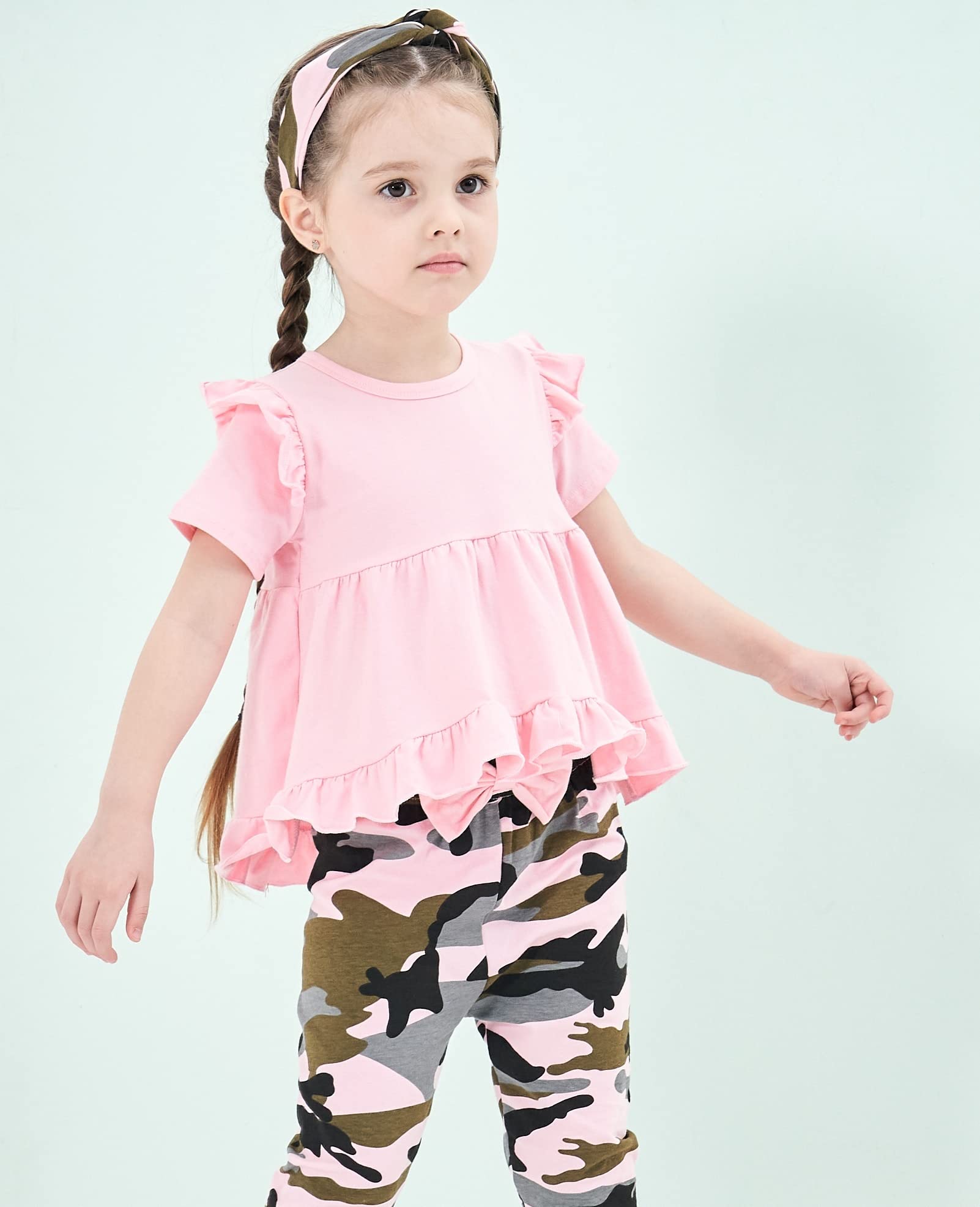 With details we love like ruffle hem design,cute print,as well as elastic waist,this cute girl clothes is sure to brighten up your baby girl's day. All the details make the perfect gift for baby.