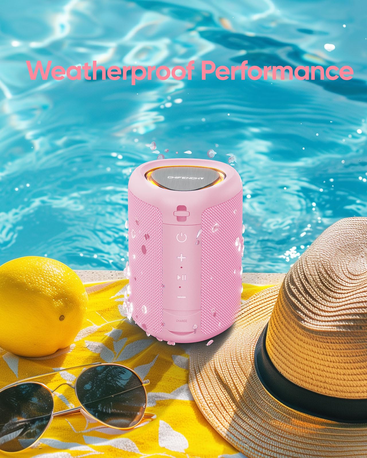 【Beach Day Essential – IPX5 Waterproof & Sand-Resistant】 From splashing in the waves to lounging by the pool, this speaker is built for summer adventures. With IPX5 waterproof protection, it handles ocean mist, sudden rain showers, and poolside splashes without skipping a beat. When the sand settles, just rinse it off and it's ready for the next beach day. Also perfect for shower sing-alongs, backyard sprinklers, or any splashy fun