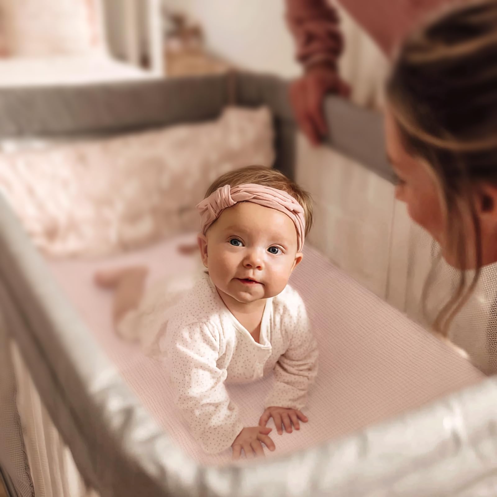 Soft Pink Tones: With soft shades of pink, these pack and play sheets add a tender, feminine touch to your little one’s nursery. Perfect for baby girls, the gentle colors bring warmth and sweetness to any space, whether you're preparing her first room or choosing a heartfelt gift for a new arrival.