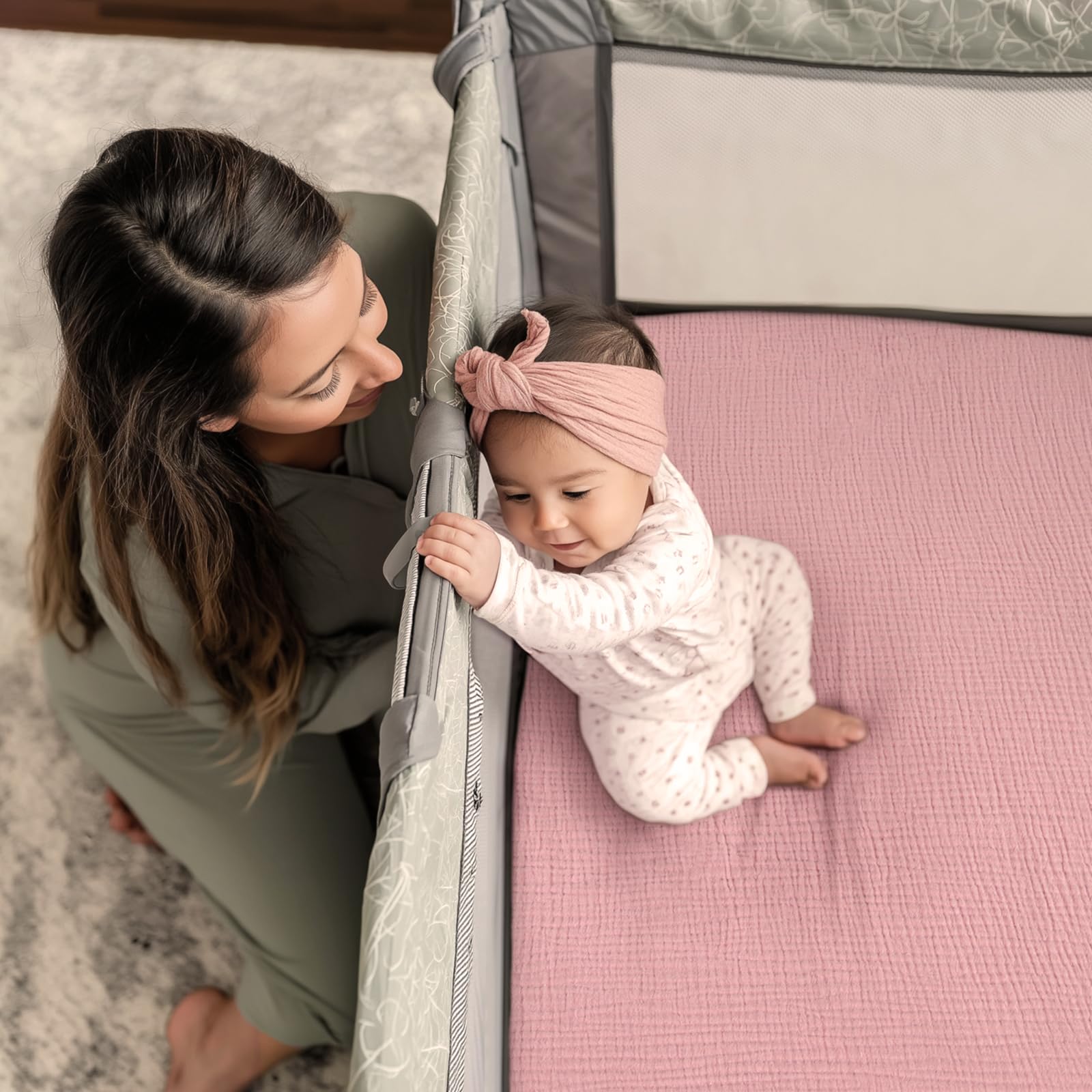 Snug & Secure Fit: Each sheet features an all-around elastic edge that wraps snugly around crib mattresses. This ensures the sheet won’t shift or bunch up, even when babies roll, kick, or move. Designed to match 4moms Pack and Play, it keeps your baby safe and comfortable during every active moment.