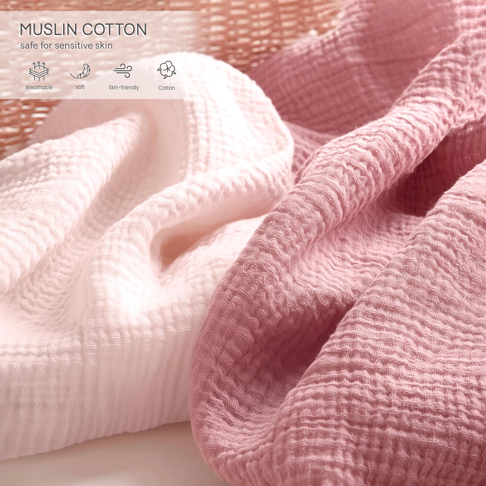 Soft & Breathable Muslin: Made from lightweight muslin cotton, these pack and play sheets offer natural softness and breathability, creating a cozy base for newborns and infants. The gentle fabric reduces skin irritation during naps and playtime, making them ideal for babies with sensitive skin. Whether it's your baby’s daily nap in the nursery or tummy time in the playpen, comfort starts from the surface.