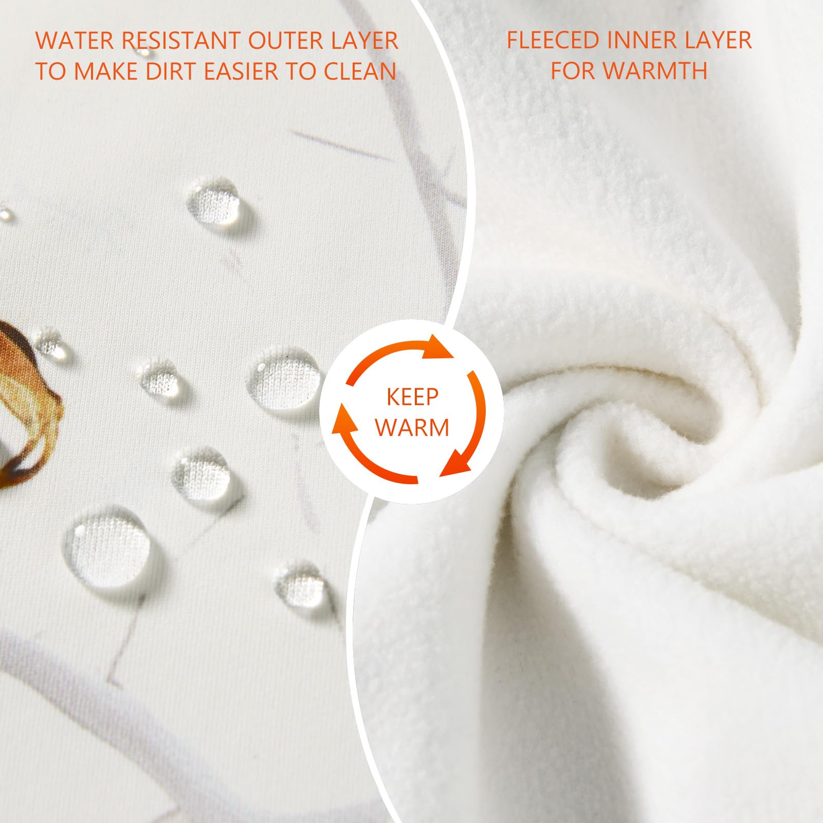 Water and stain-resistant treatment makes dirt easier to clean; Stretchy elastic fabric allows for free movement, and the soft fleeced lining provides extra warmth