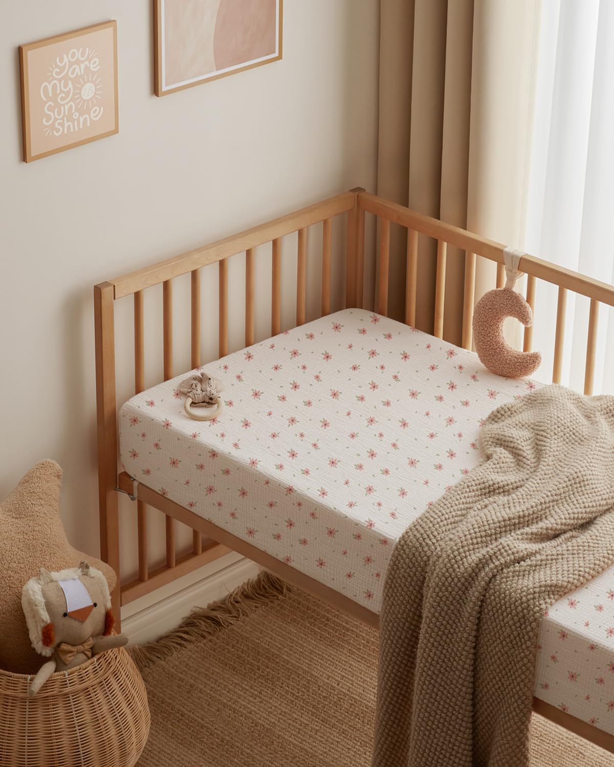 Nice Baby Essentials: With cute patterns and boho colours, the muslin crib sheets for boys and girls are chic and versatile to match your nursery, definitely a nice decoration