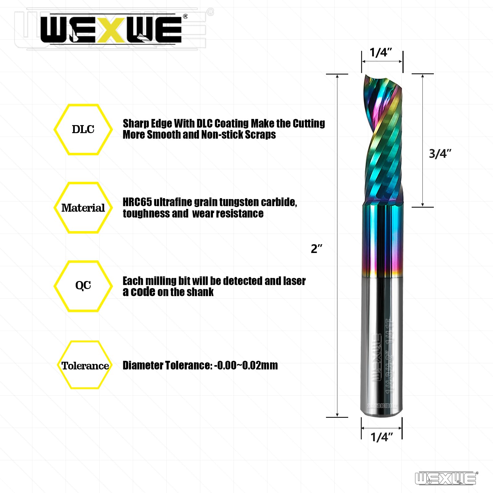 Inch Size and Diameter Tolerance:Diameter 1/4 - Cutting Edge Length 3/4" - Overall Length 2.0" Tolerance:-0.00mm to -0.02mm.